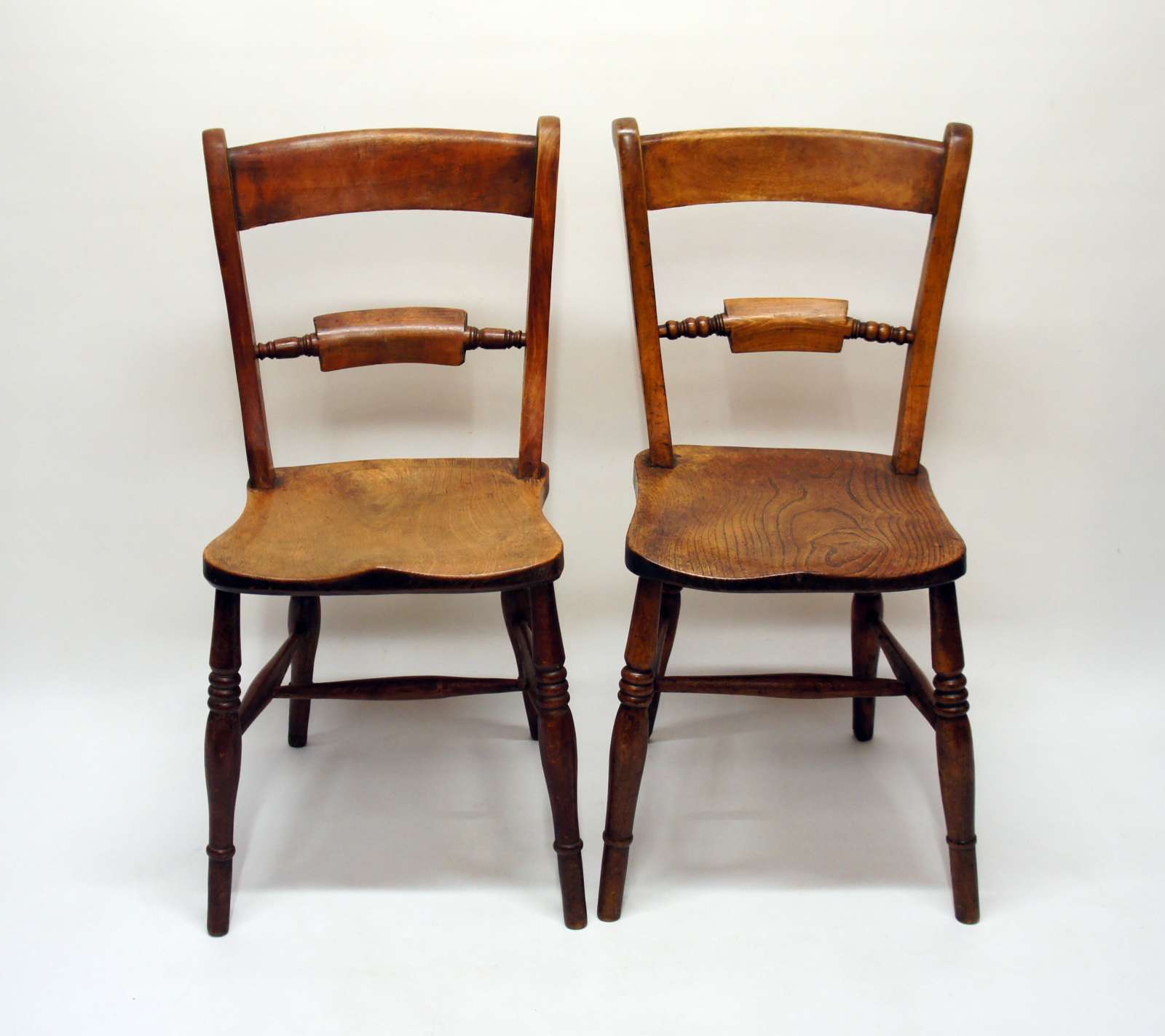 Very Near Pair of Victorian Scroll Back Oxford Chairs in Beech / Elm