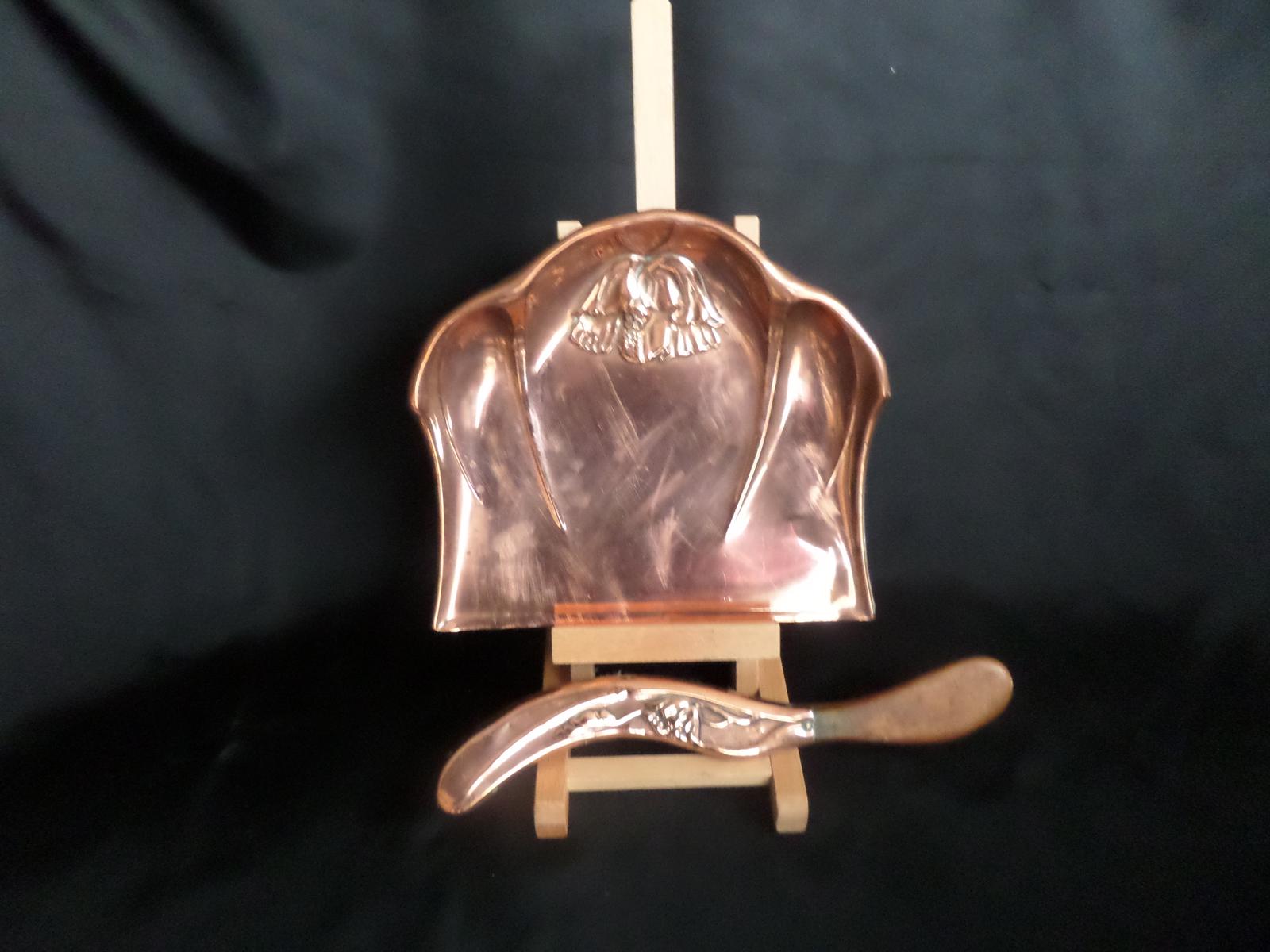 Very Nice 'Art Nouveau' Copper Crumb Tray & Brush Set - Victorian c.1880