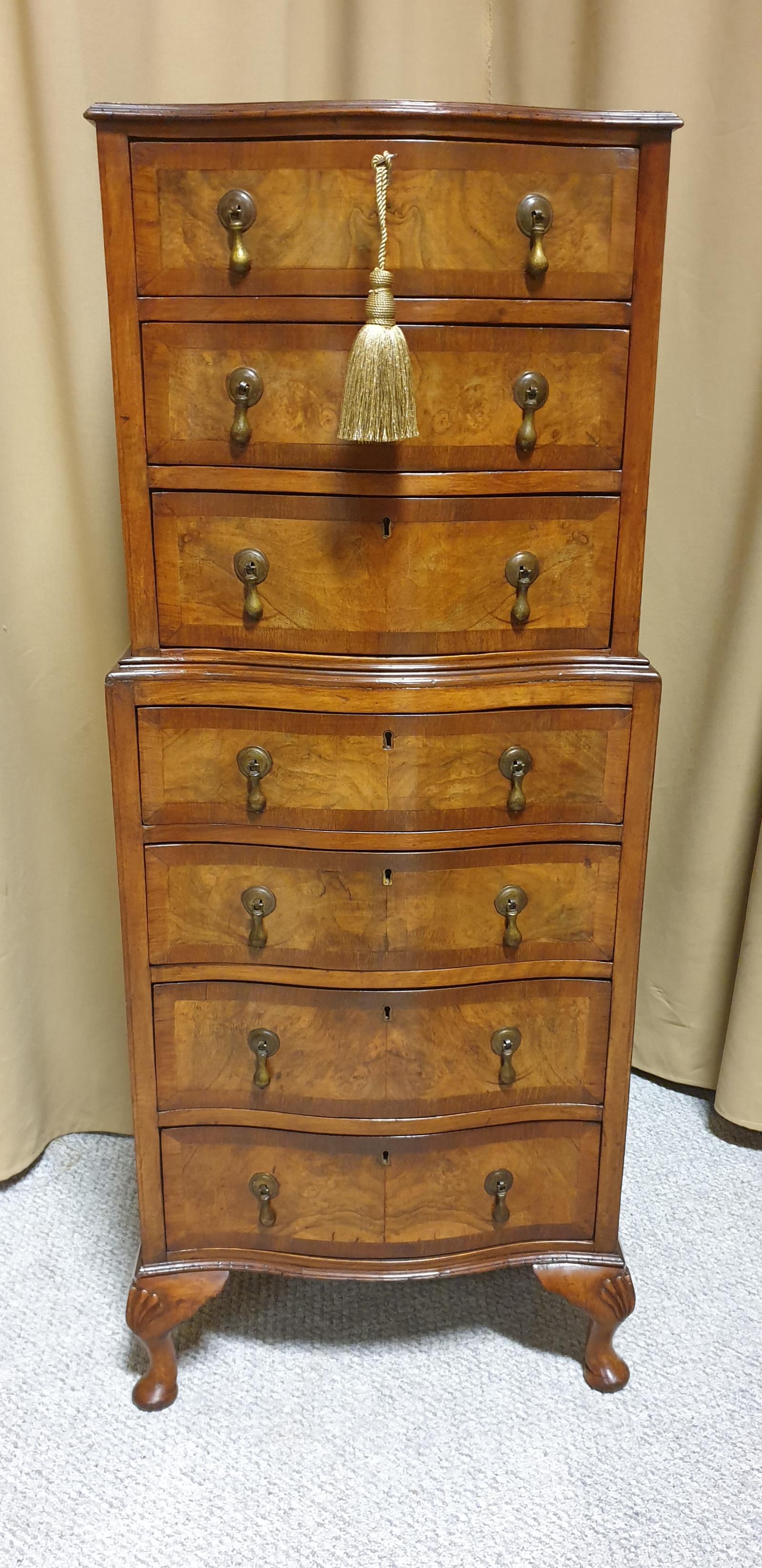 Very Nice Burr Walnut Chest on Chest of Drawers