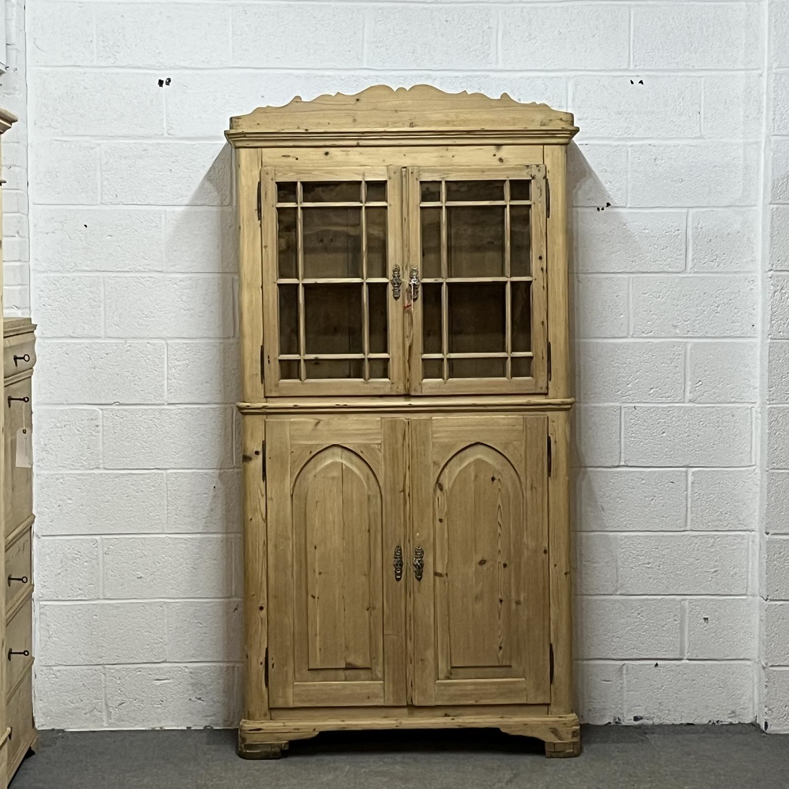 Very Old Tall Slim Pine Partly Glazed Cupboard Cabinet