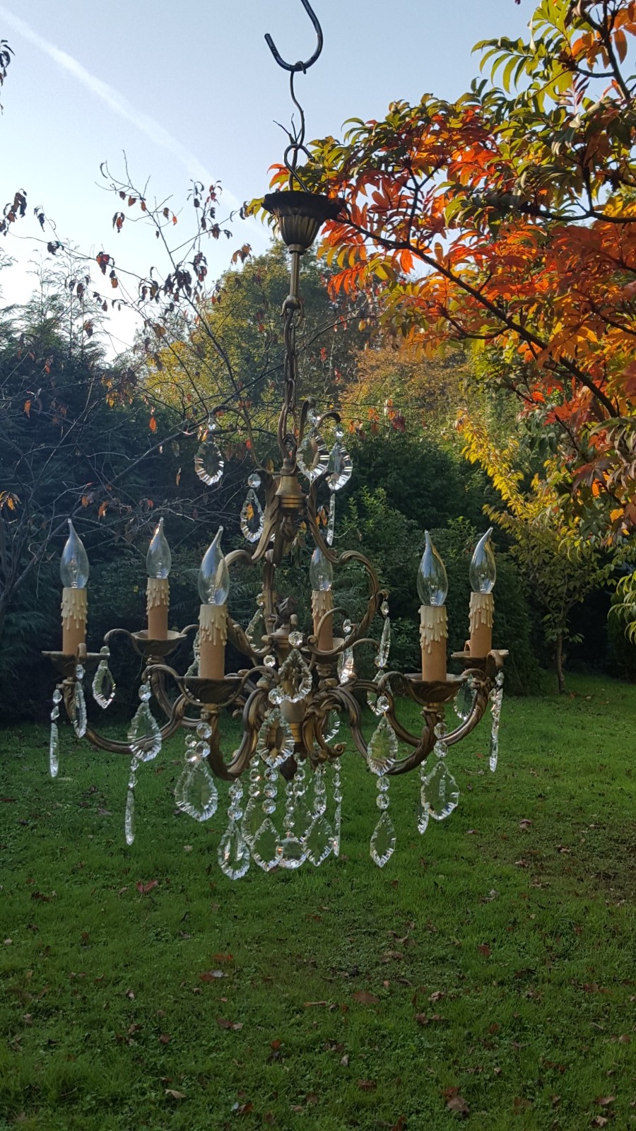 Very Pretty 6 Arm Bronze Cage Chandelier with Gorgeous Drops