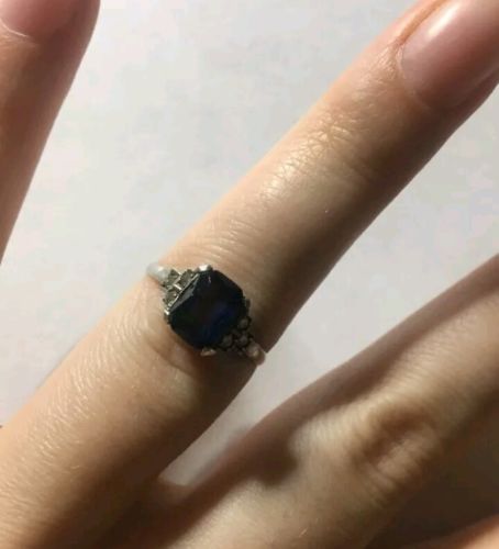 Very Pretty Art Deco Blue & White Stone Yellow Gold Ring