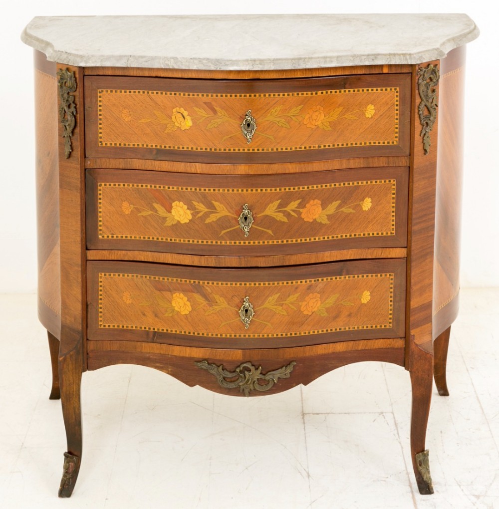 Very Pretty French Inlaid Marble Top Commode c.1920 (1 of 7)