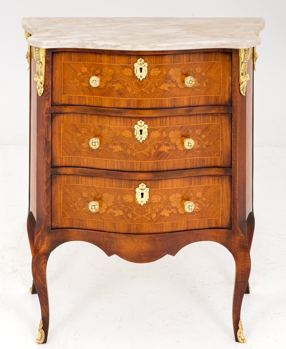 Very Pretty French Walnut 3 Drawer Marquetry Chest c.1920 (1 of 1)
