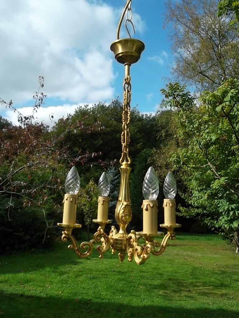 Very Pretty Petite Unusual Vintage French Bronze 4 Arm Chandelier