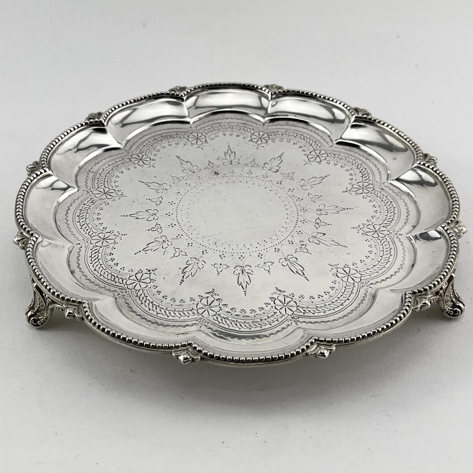 Very Pretty Victorian Round Sterling Silver Salver