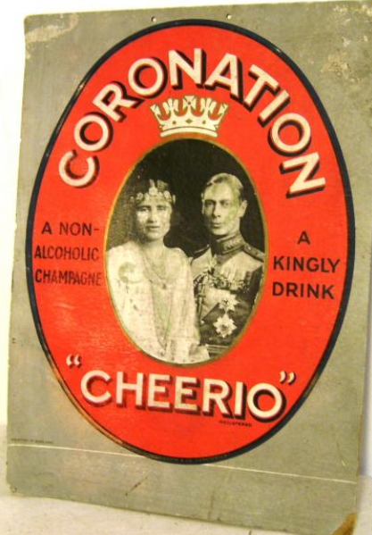 Very Rare 1937 Cardboard Advertising Sign 'cheerio' Coronation Champagne