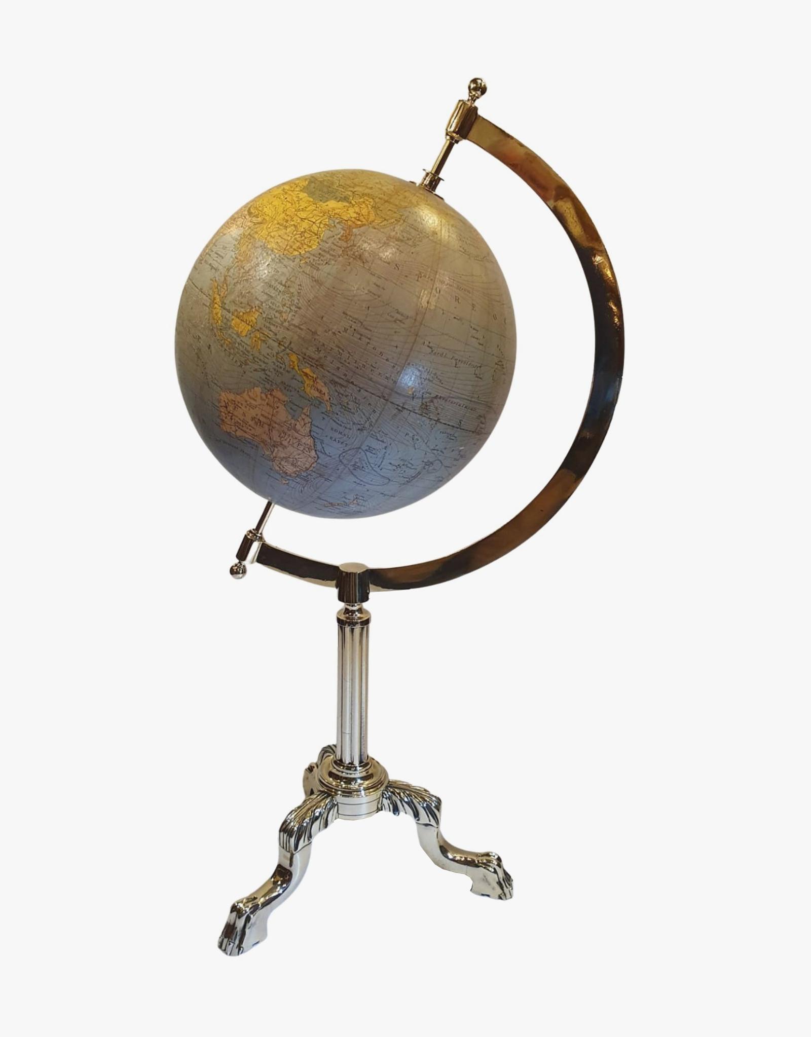 Very Rare 1940’s World Globe on Original Polished Brass Stand
