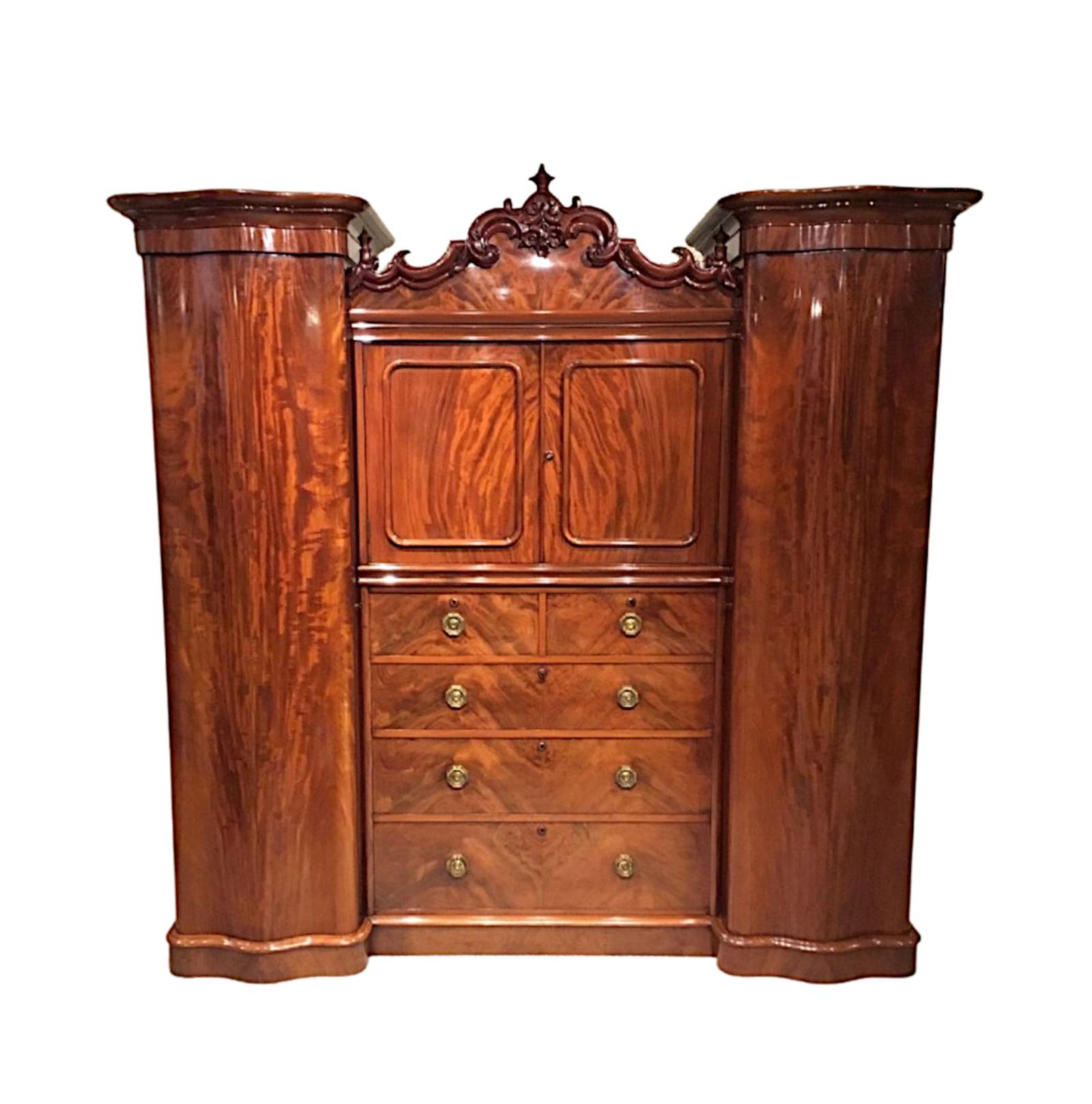 Very Rare 19th Century Flame Mahogany Wardrobe with Serpentine Doors