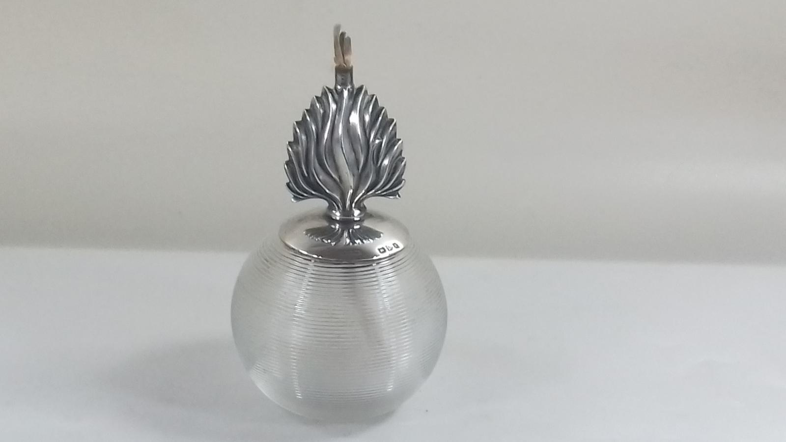 Very Rare Antique Sterling Silver Ribbed Glass Grenadier Match Striker Taper Light c.1900