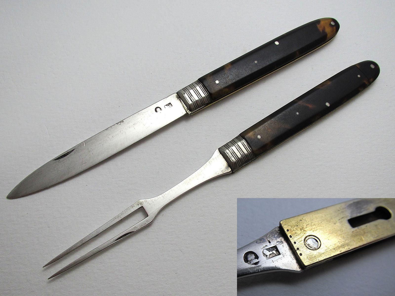 Very Rare George III Sterling Silver Tortoiseshell Interlocking Folding Campaign Fruit Knife & Fork Set
