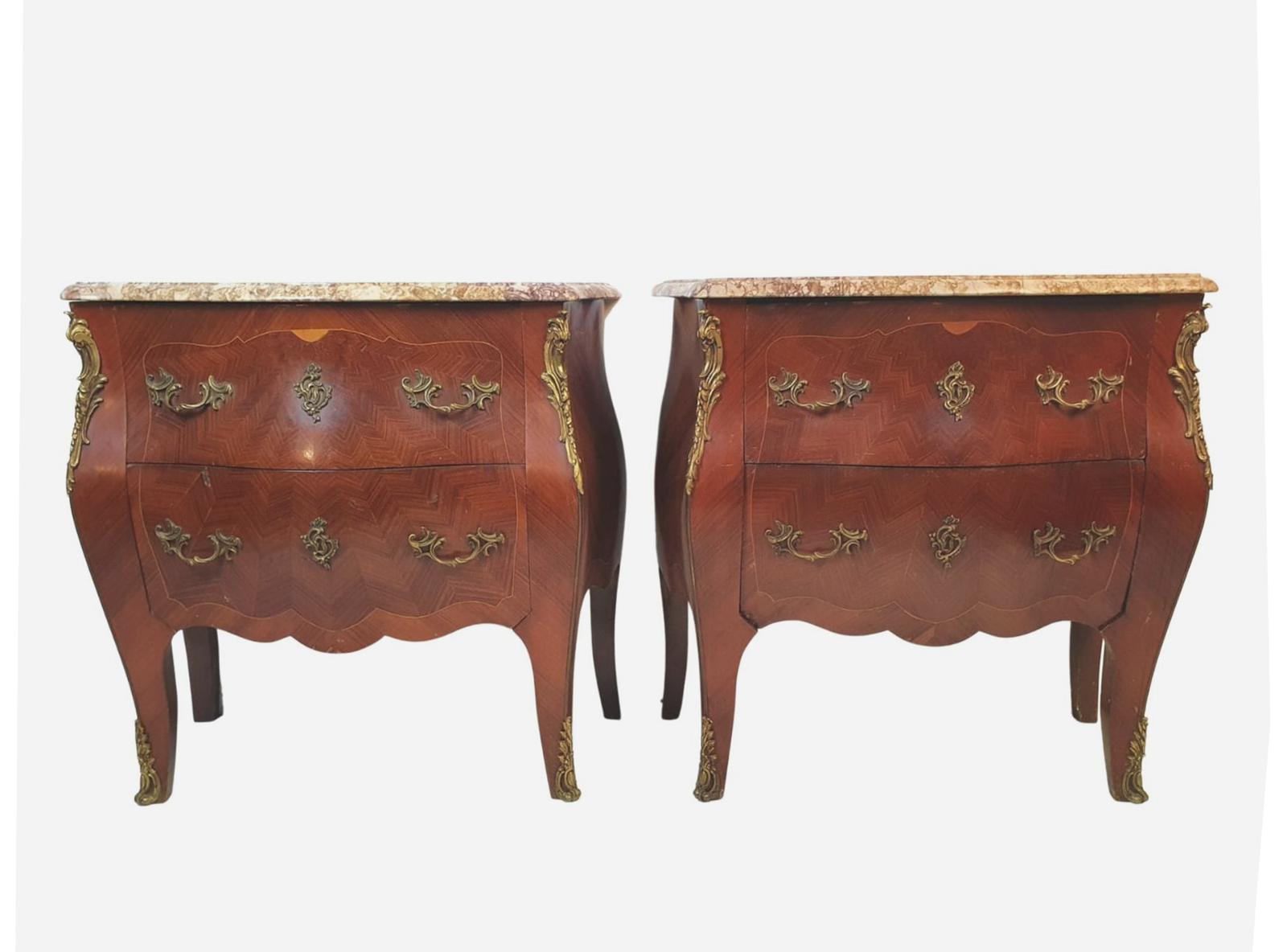 Very Rare Pair of 19th Century French Inlaid Kingwood Marble Top Chests