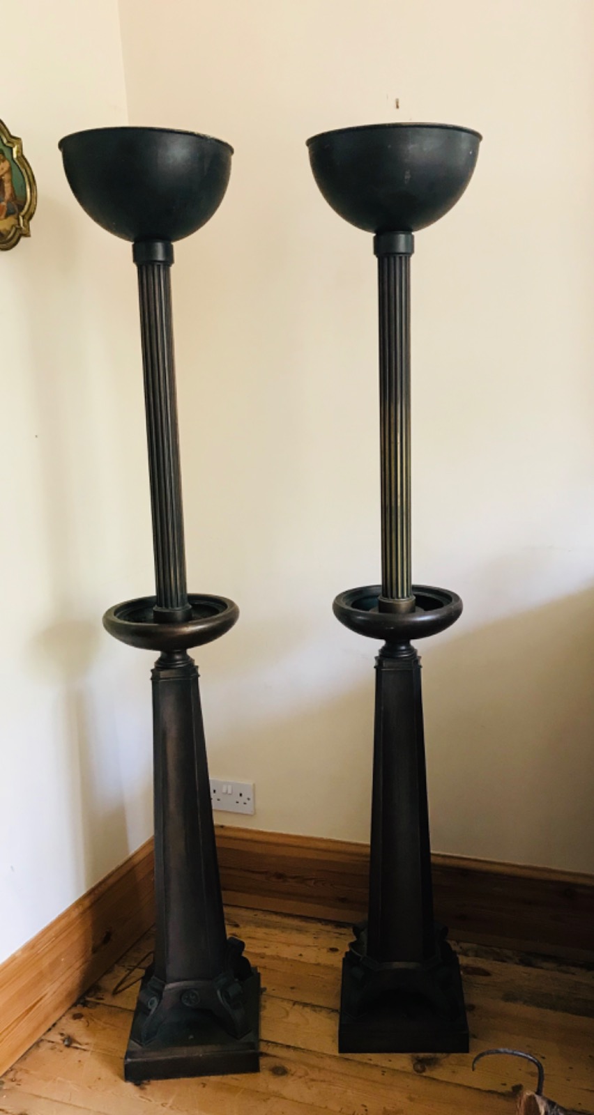 Very Rare Pair of Bronze Art Nouveau Uplighters