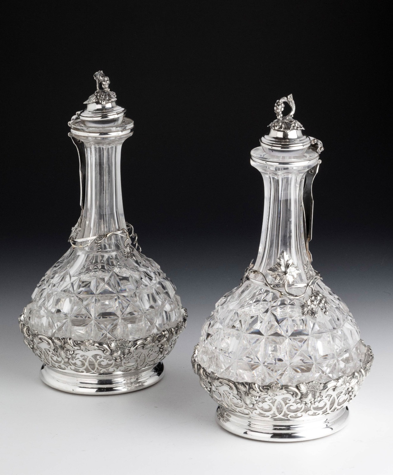 Very Rare Pair of Late 19th Century, Cut Glass Wine Decanters