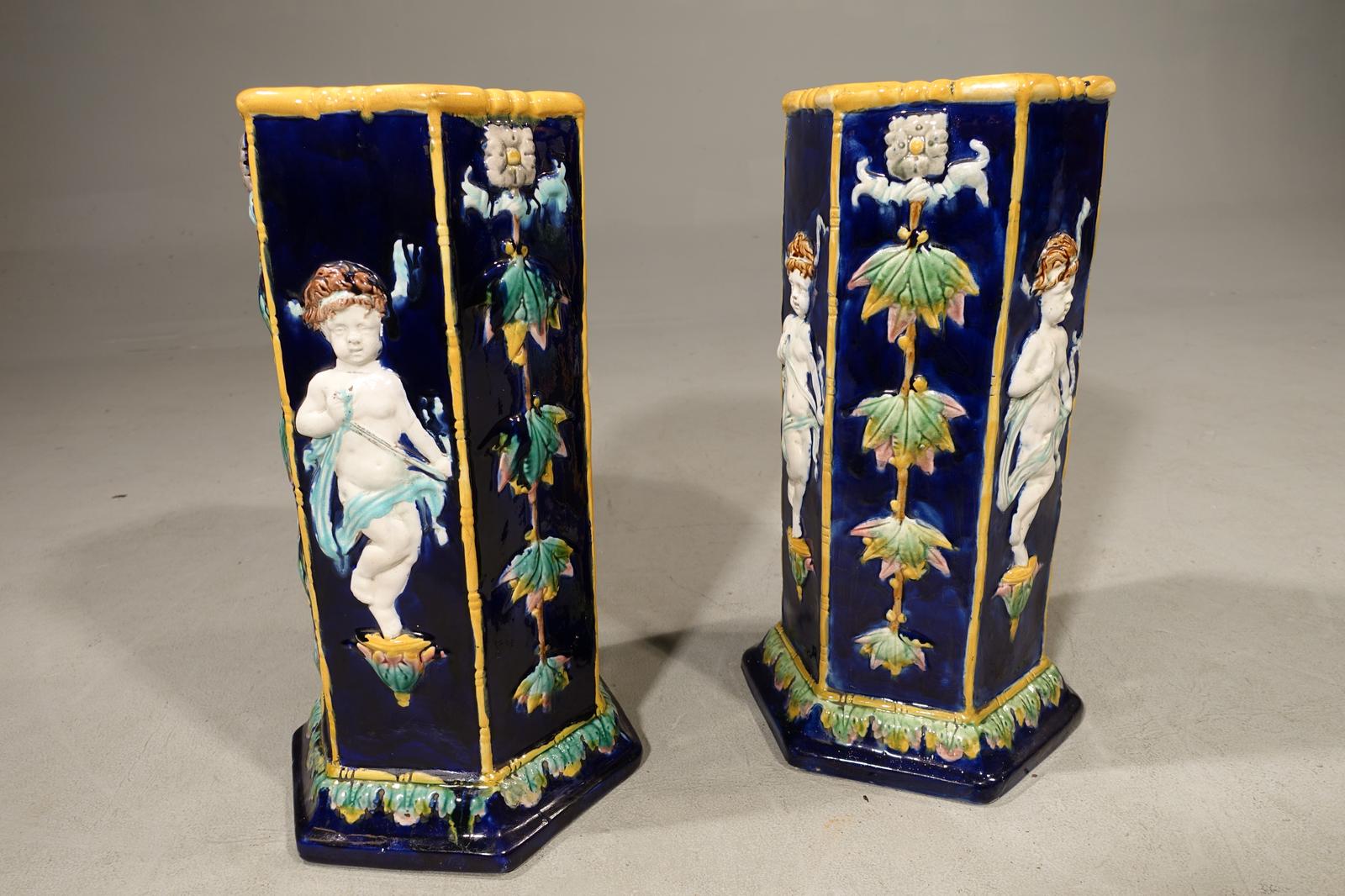 Very Rare Pair of Late 19th Century Majolica Stick Stands