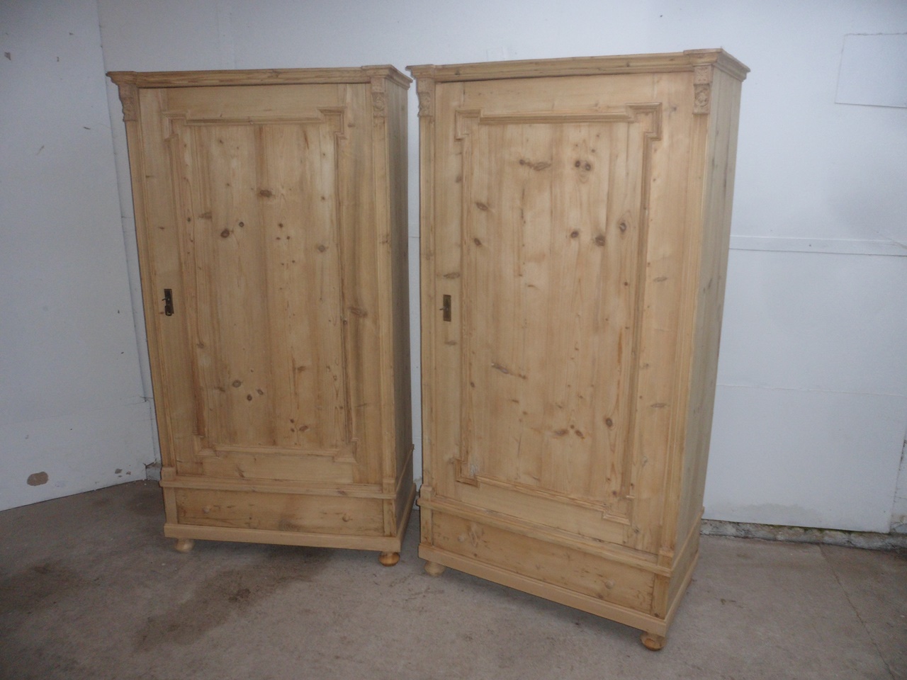 Very Rare Pair of Pine Moulded Storage Cupboards / Children's Wardrobes
