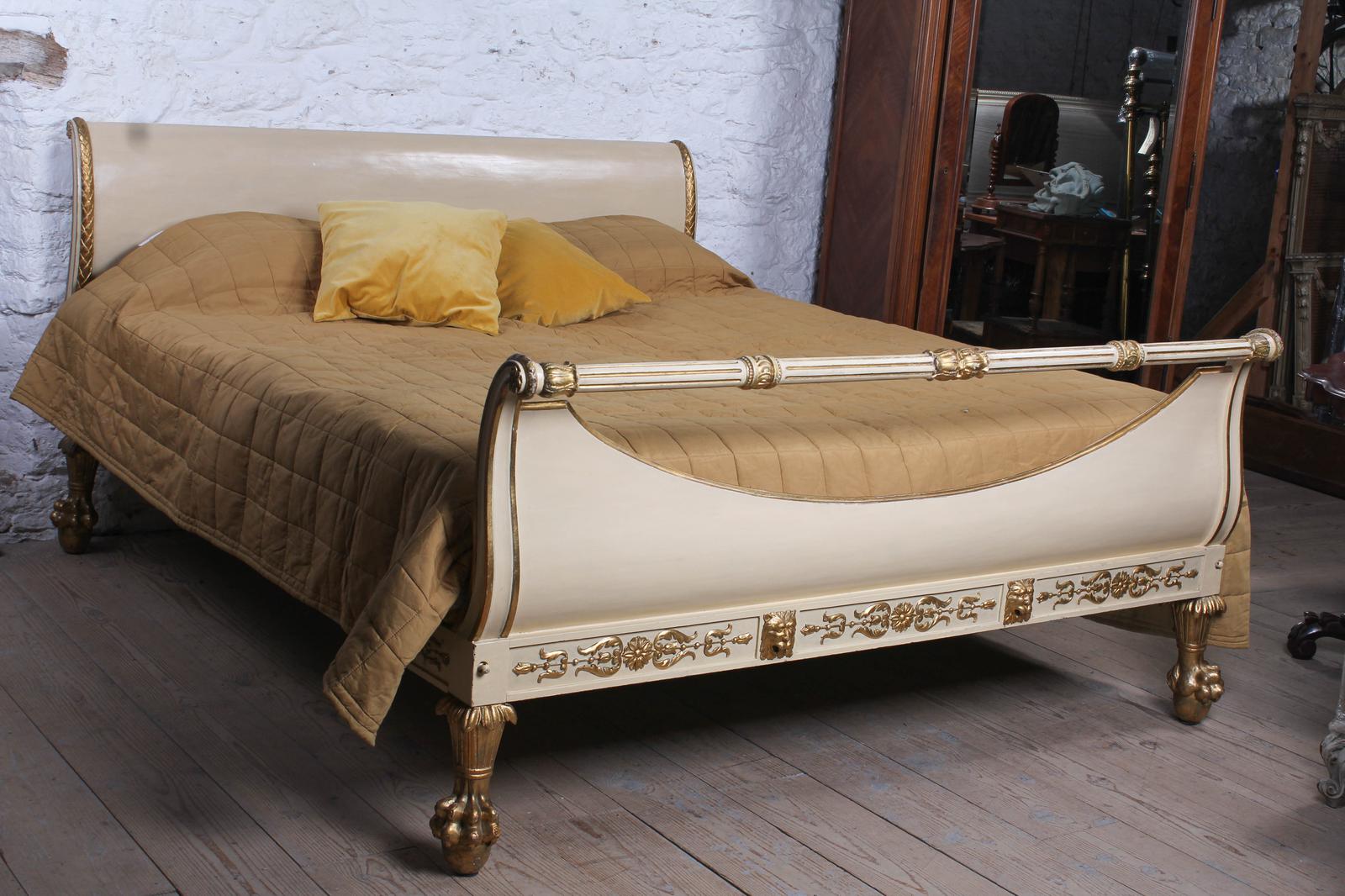 Very Rare Renaissance Style Sleigh Bed with Parcel Gilt