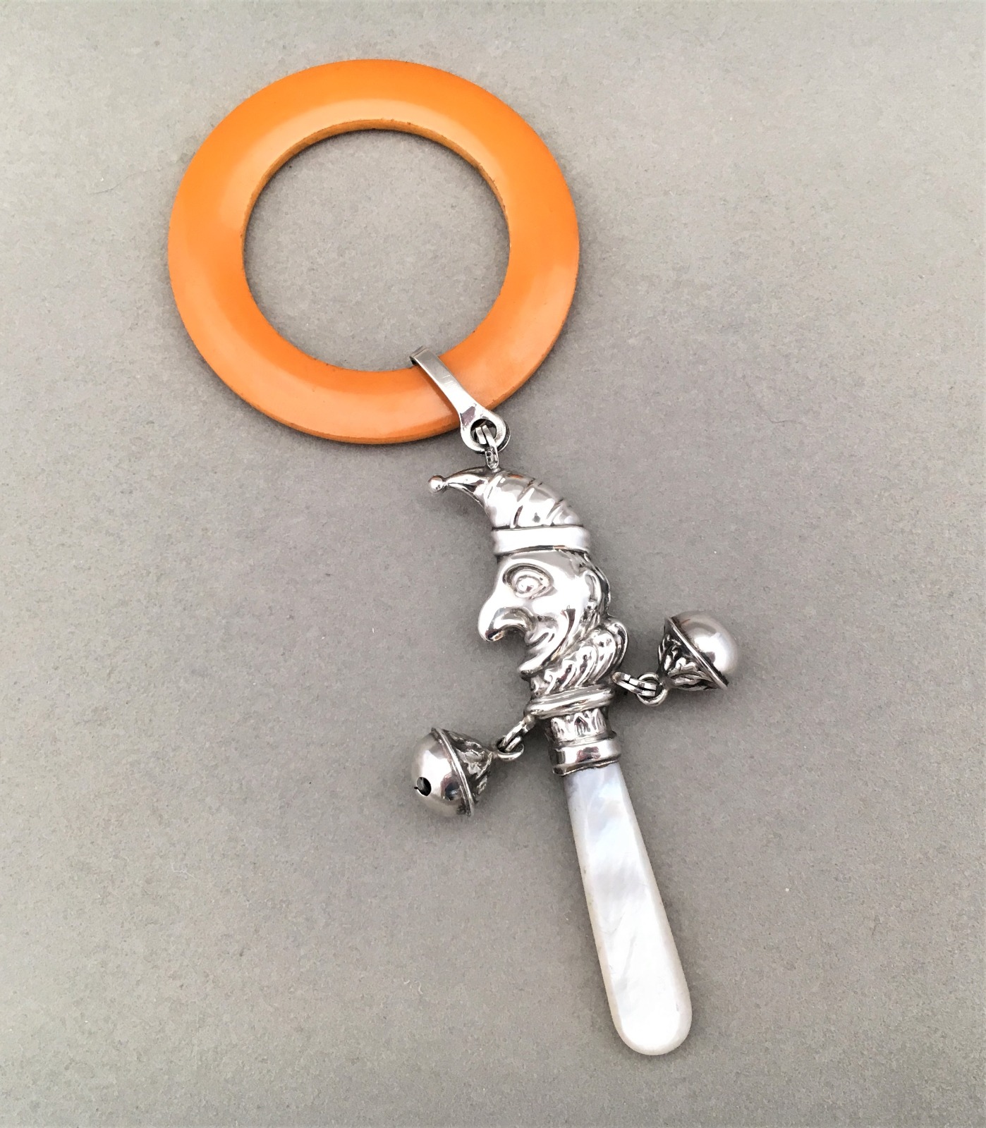 Very Rare Silver 'Mr. Punch' Rattle & Teether