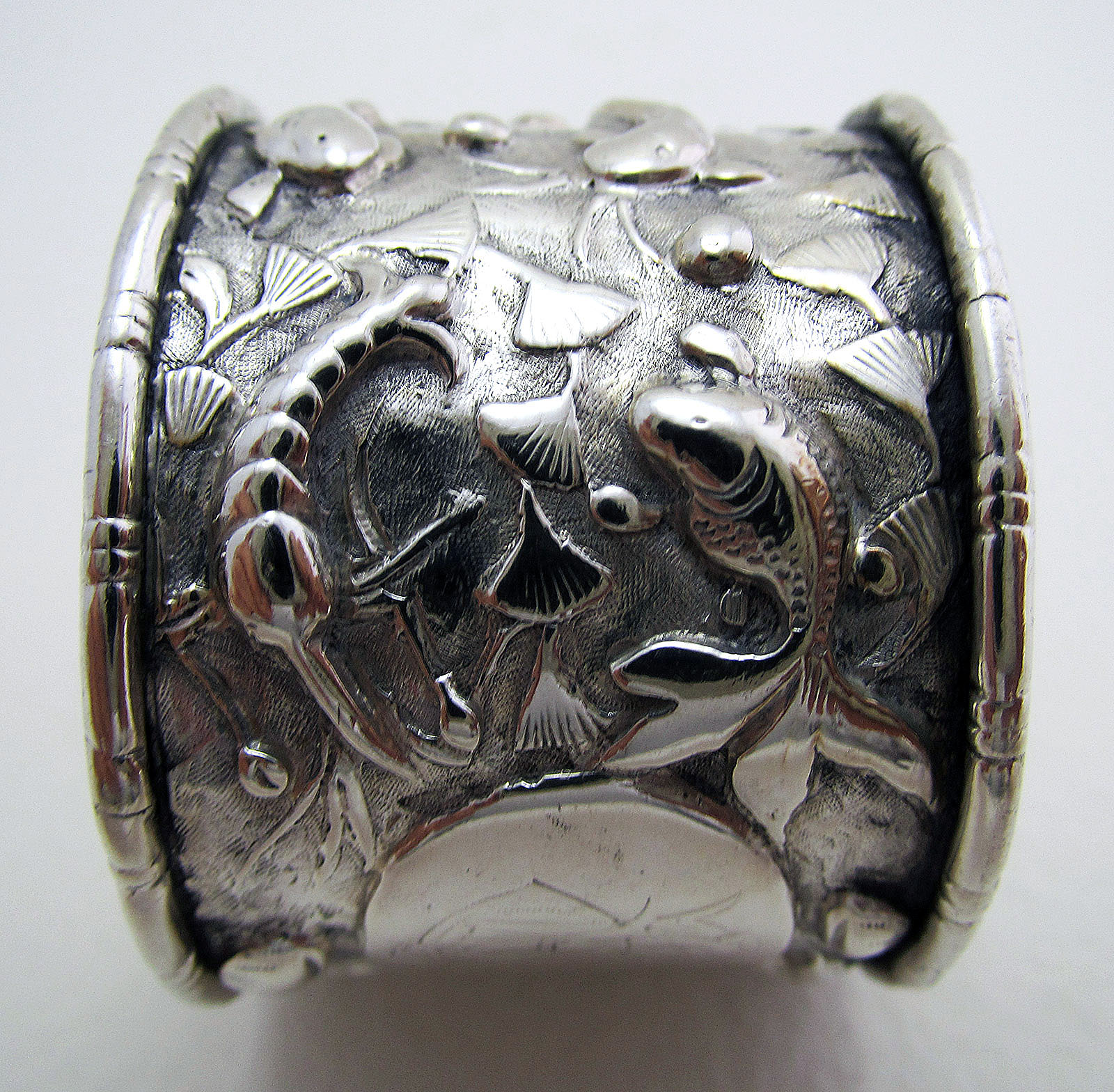 Very RAre Straits Chinese Export Peranakan Solid Silver Antique Napkin Ring, Marked C.1910 (1 of 9)
