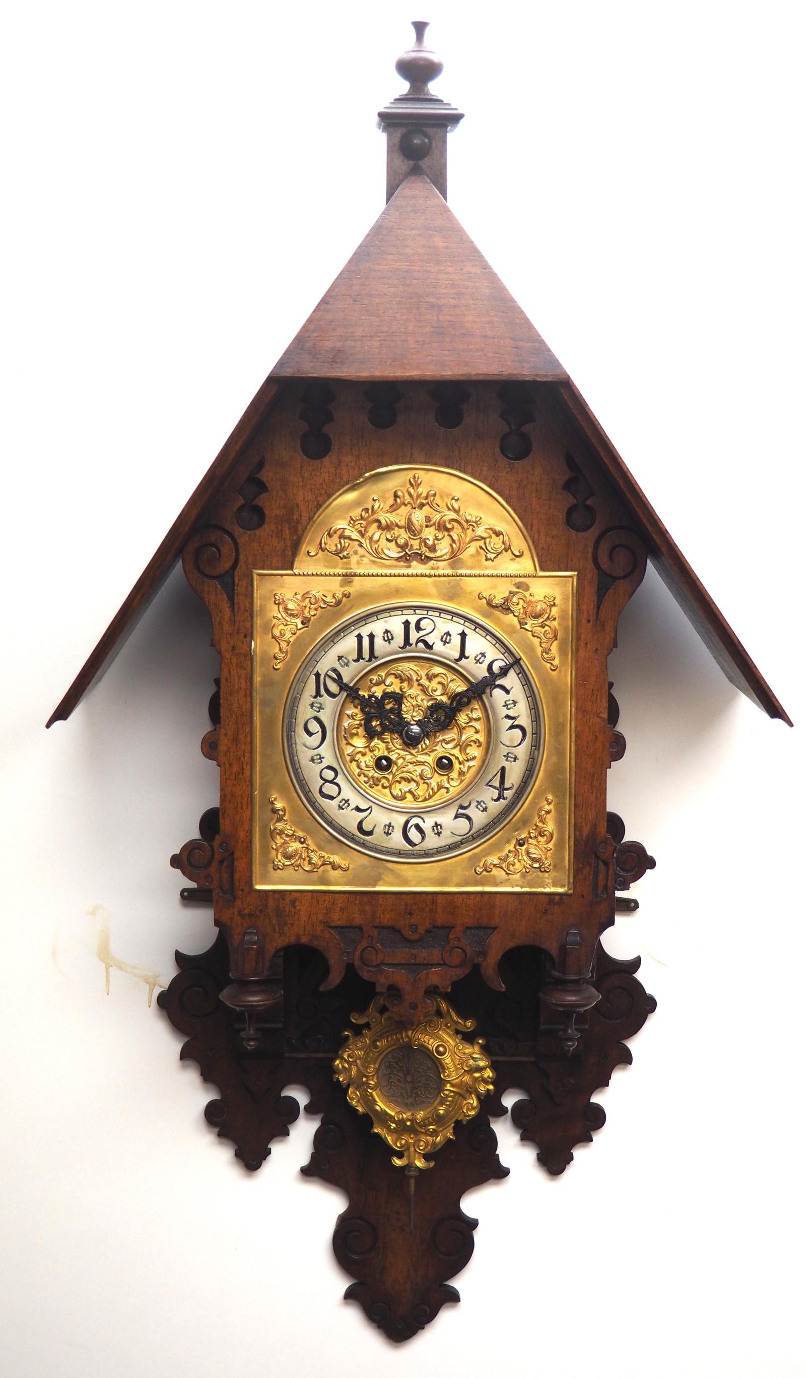 Very Rare Victorian 8-day Wall Clock – Black Forest Chalet Wall Clock by Junghans (1 of 11)