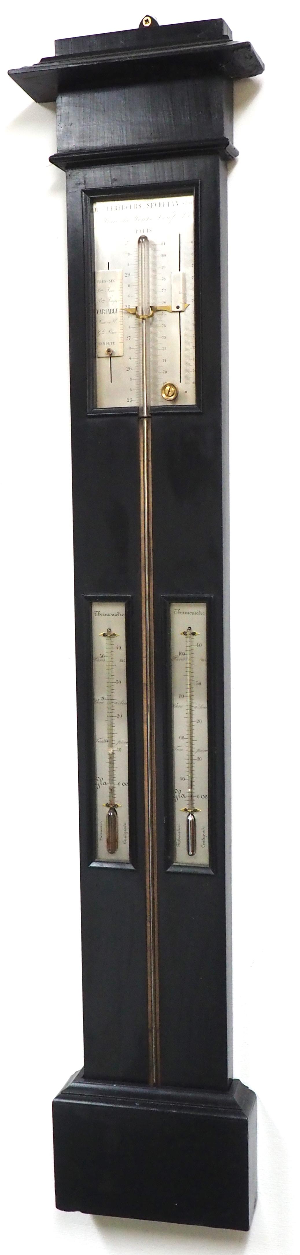 Very Rare Victorian French Ebony Stick Barometer Silver Dial By Mson Lerebours Secretan Succ Paris