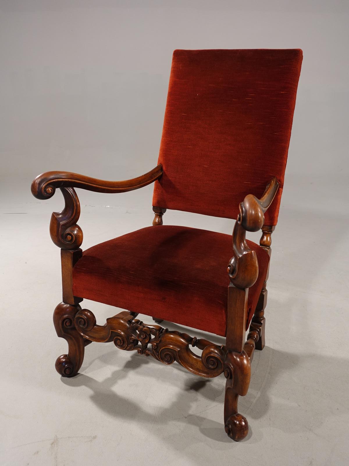 Very Shapely Early 20th Century Carolean Style Walnut Framed Armchair
