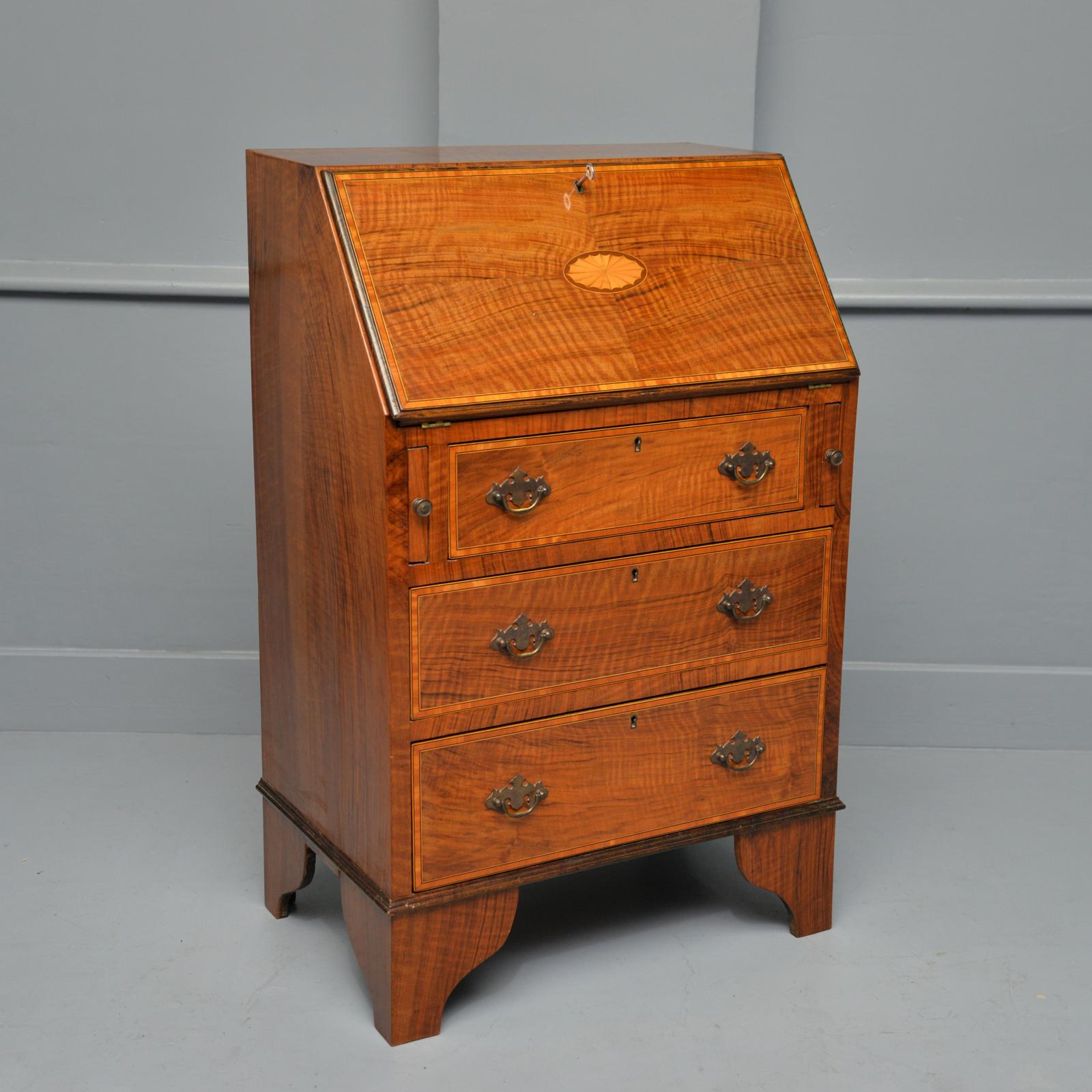 Very Sweet Small Georgian Revival 1920s Inlaid Satinwood Bureau Desk