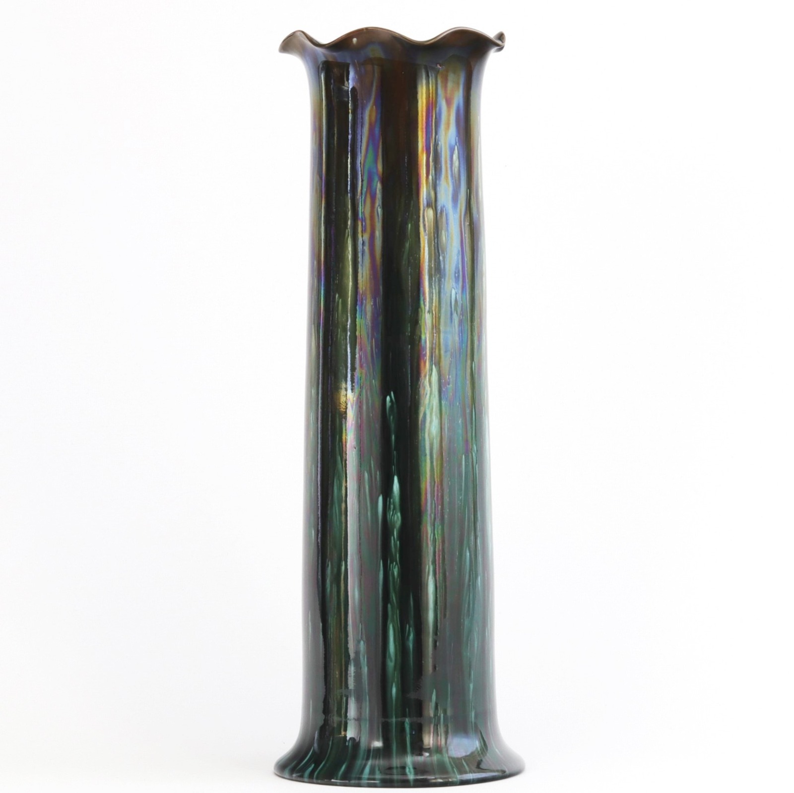 Very Tall Linthorpe Pottery Iridescent Drip-Glaze Cylindrical Vase c.1885
