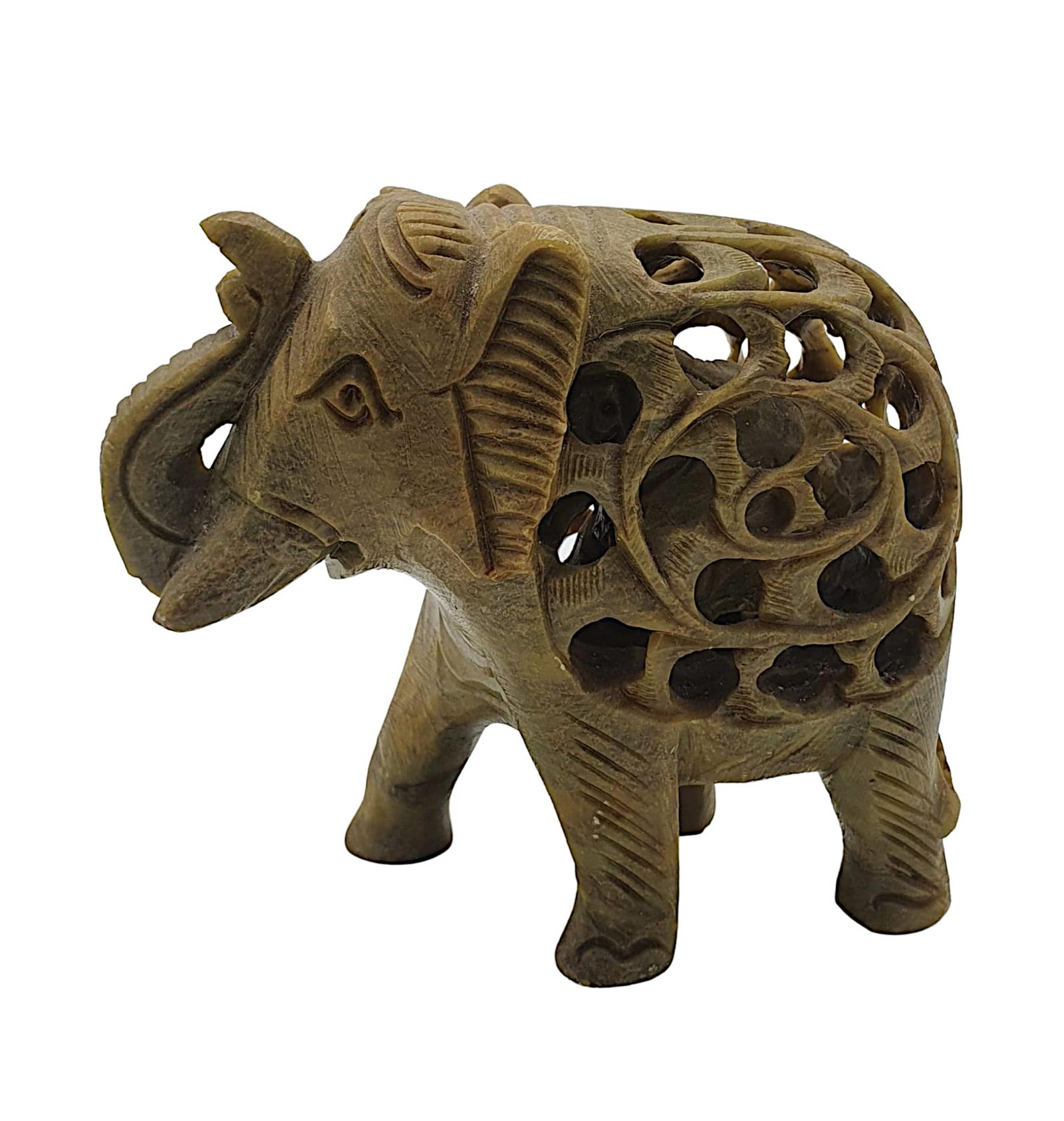 Very Unique Vintage Hand Carved Soapstone Figurine Depicting Elephant & Baby
