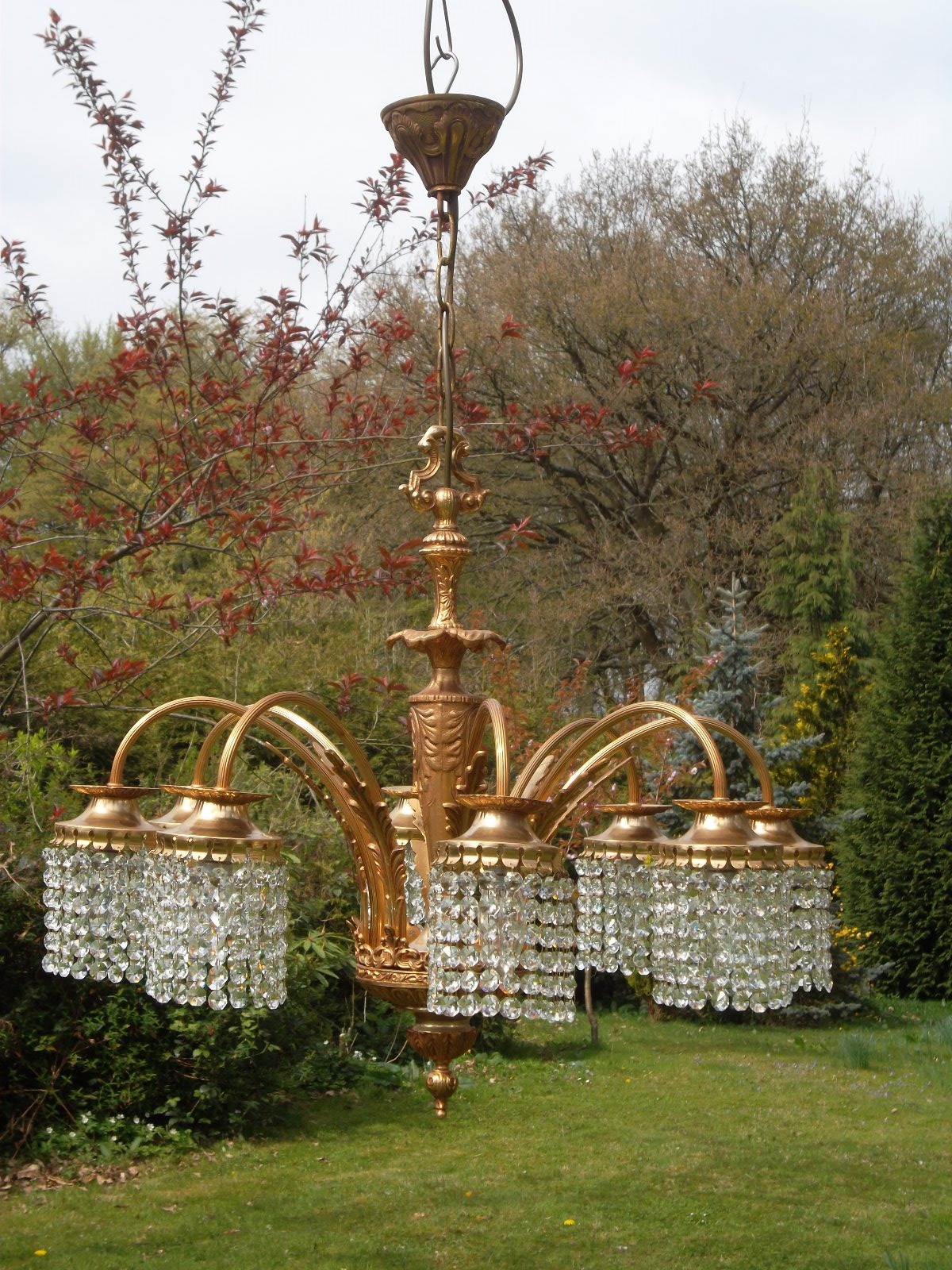 Very Unusual 8 Arm Vintage French Chandelier with Crystals