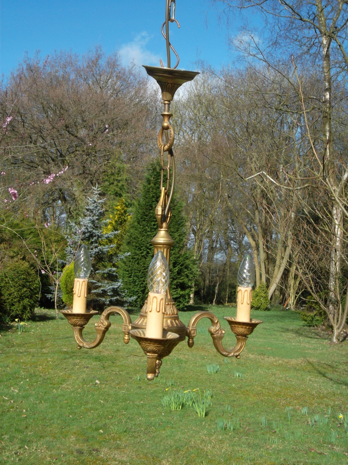 Very Unusual Pretty 3 Arm Vintage French Bronze Chandelier
