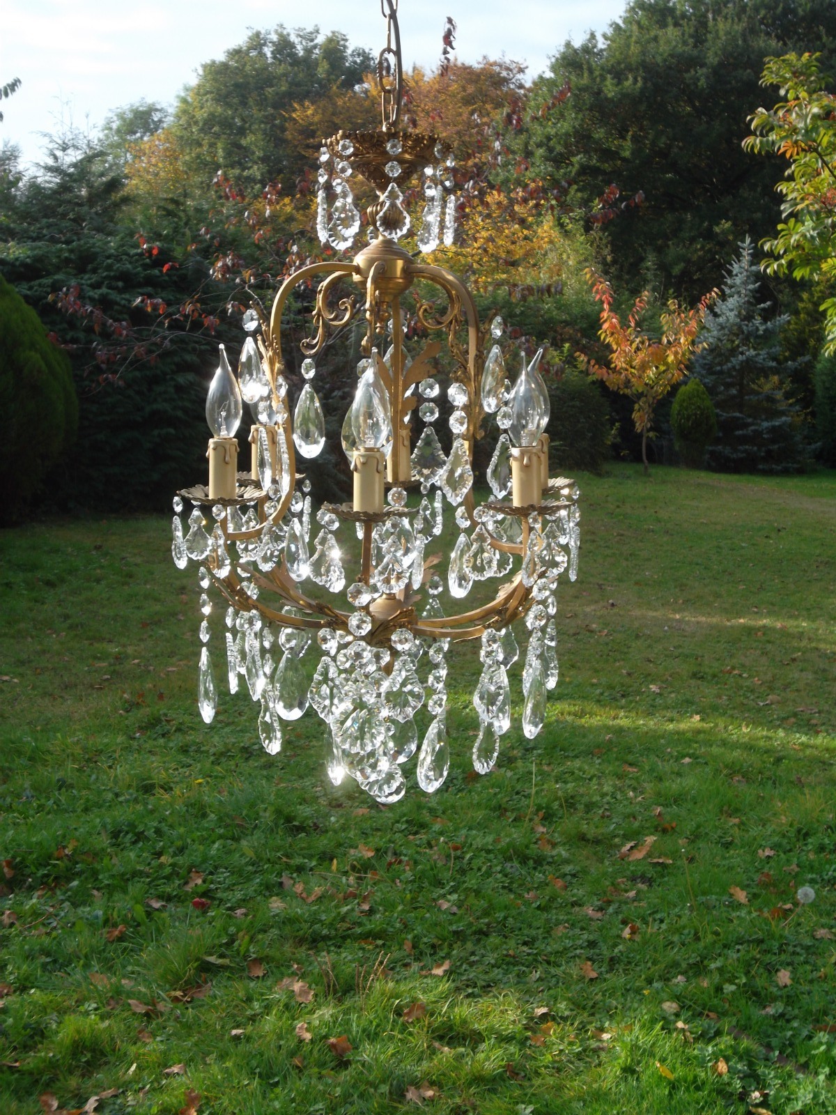 Very Unusual Vintage French 6 Arm Bronze Cage Chandelier