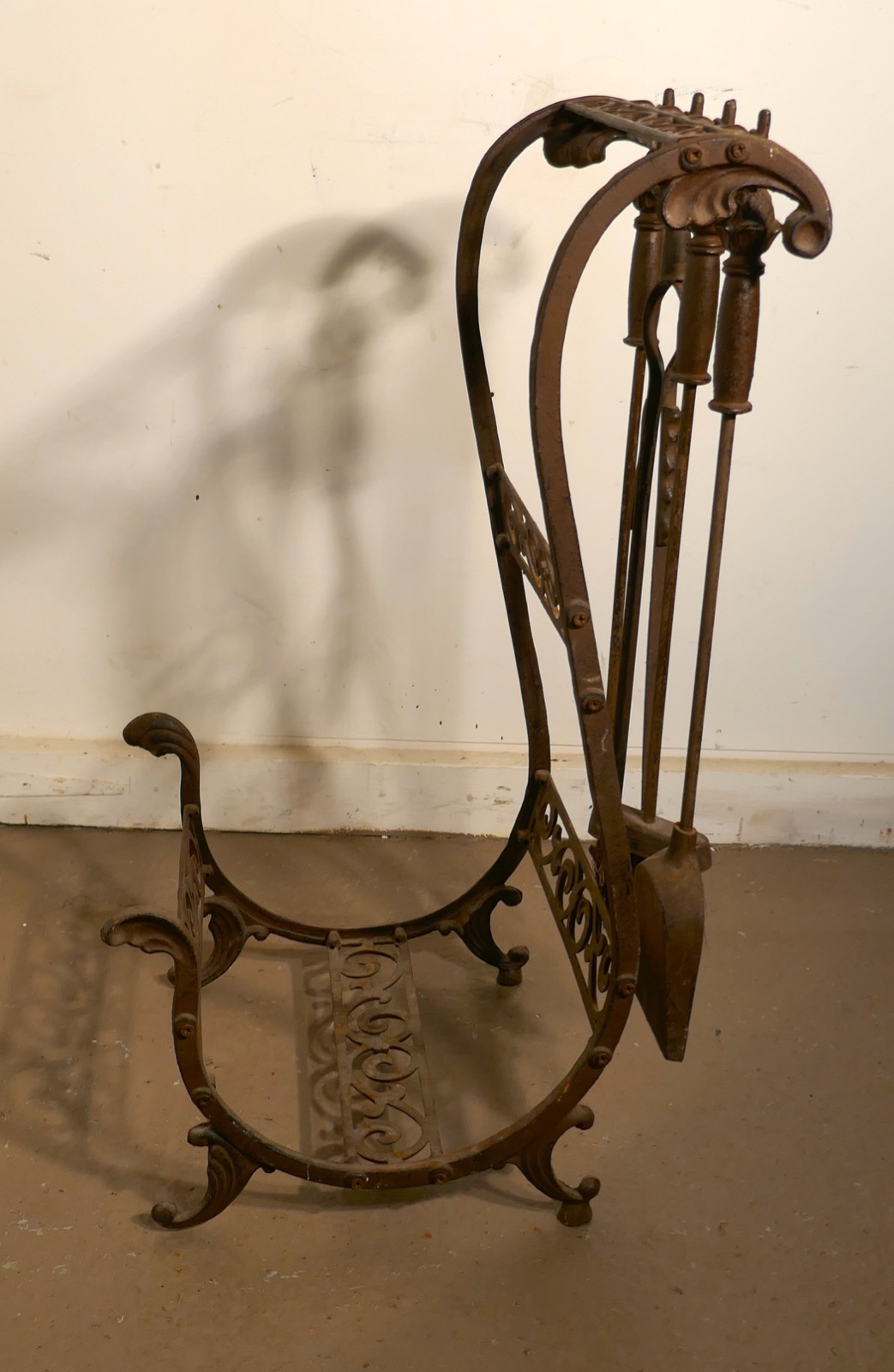 Very Unusual Wrought Iron Log Carrier & Companion Set