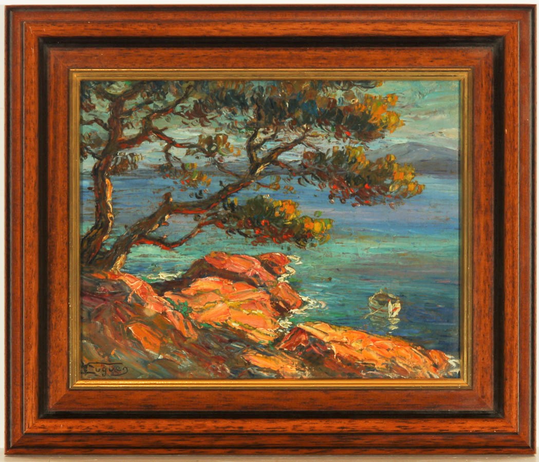 Victor Louis Cuguen - Framed Oil, Mediterranean Coast with Impasto