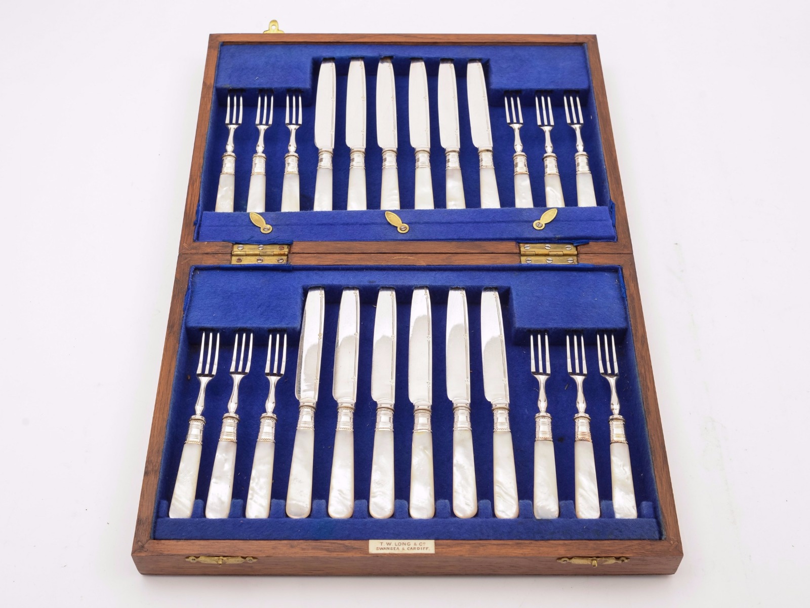 Victorian 12 X 12 Mother of Pearl & Silver Plated Dessert Set