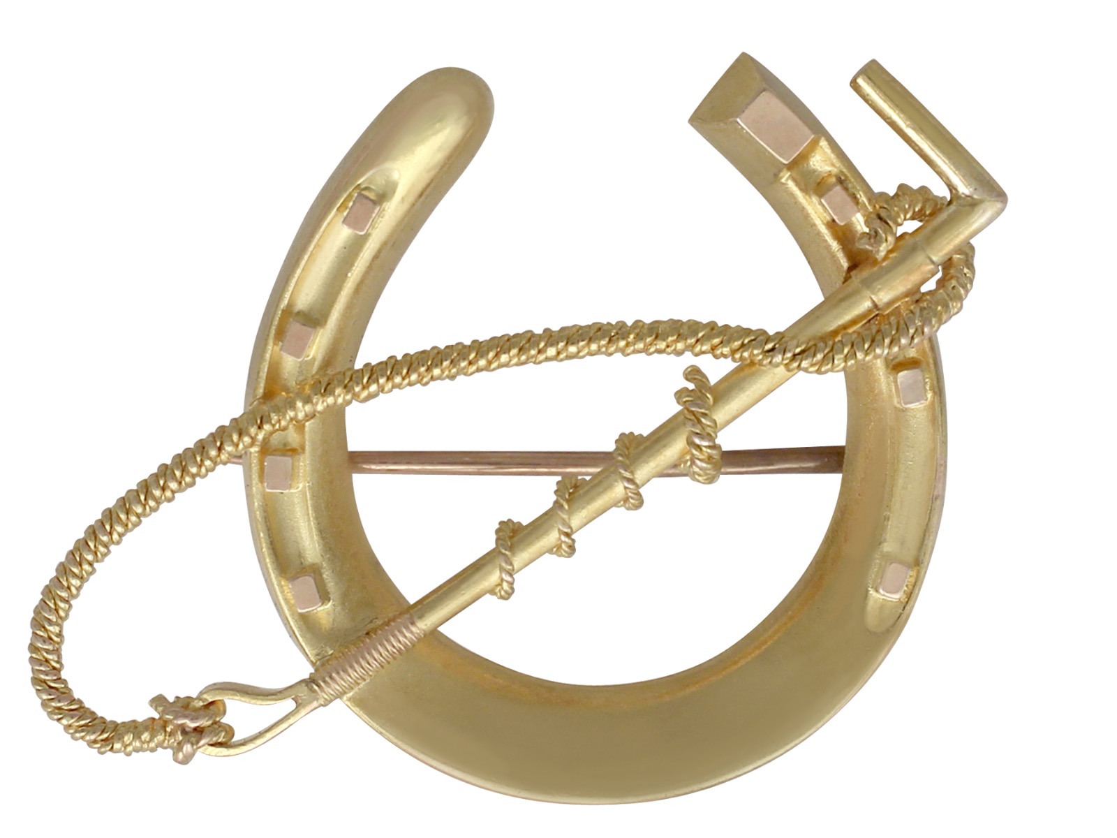 Victorian 15 Carat Yellow Gold 'Horseshoe & Crop' Brooch (1 of 6)