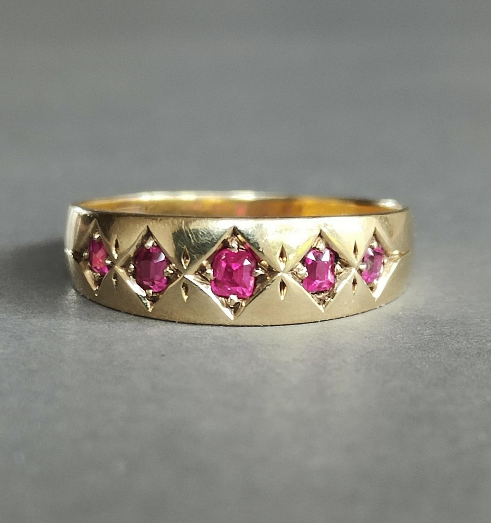 Victorian 15ct Gold and Ruby Gypsy Ring 1900