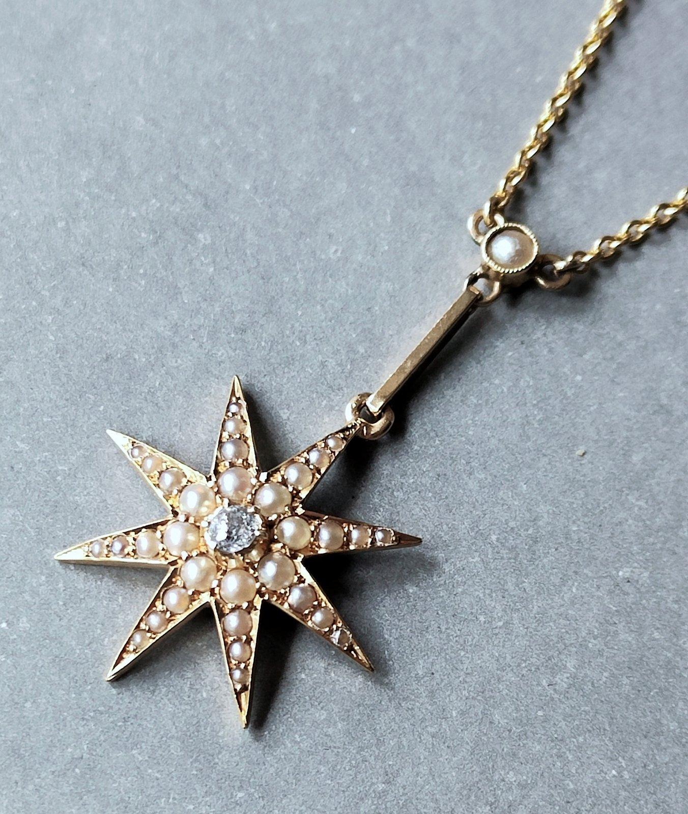 Victorian 15ct Gold Diamond Pearl Star Pendant (1 of 10)