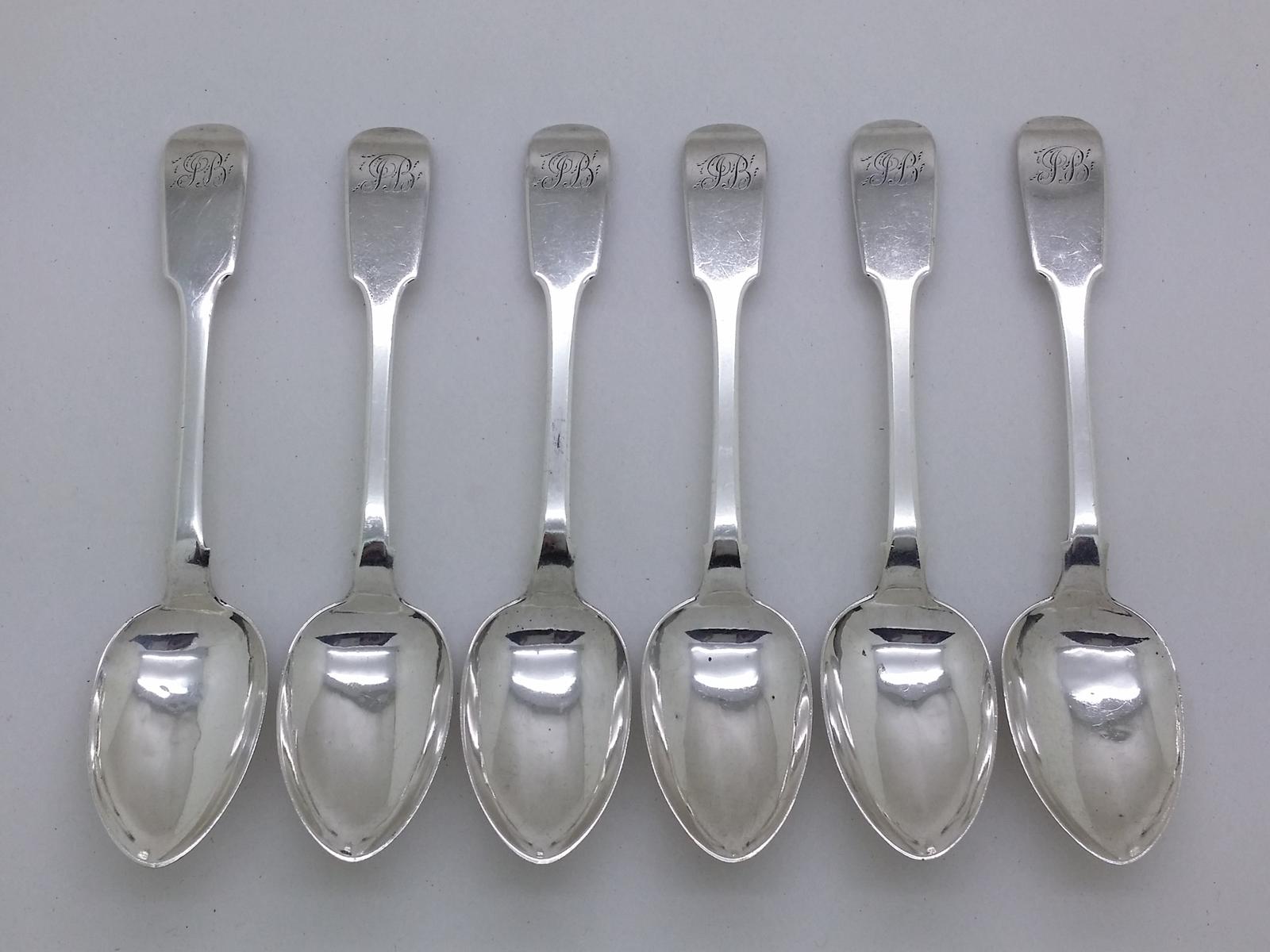 Victorian 1843 Set of 6 Sterling Silver Teaspoons Hallmarked Newcastle