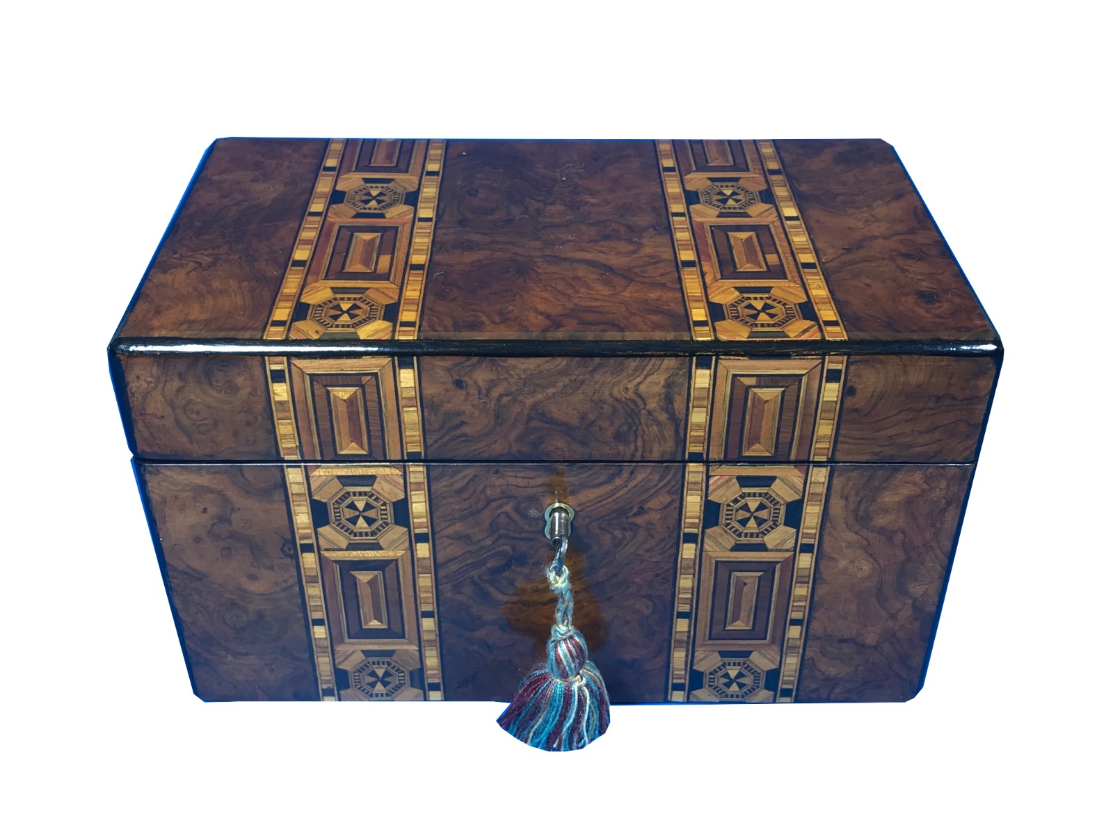 Victorian 1860 Walnut Inlaid Tunbridge Ware Tea Caddy