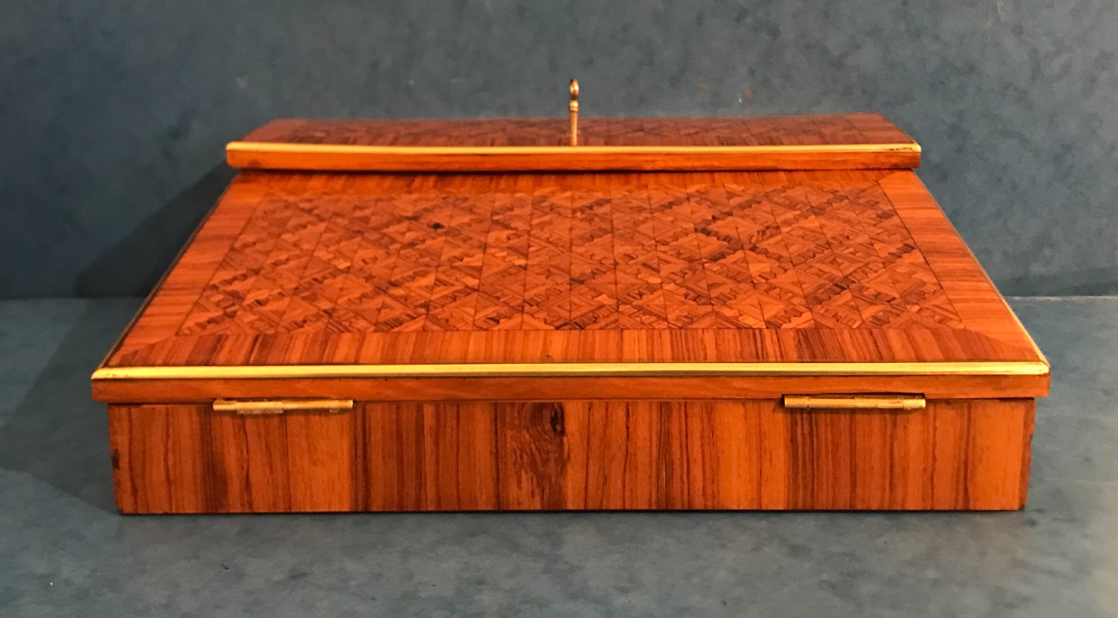 Victorian 1870 French Brass Inlaid Tulipwood Ladies Lap Desk