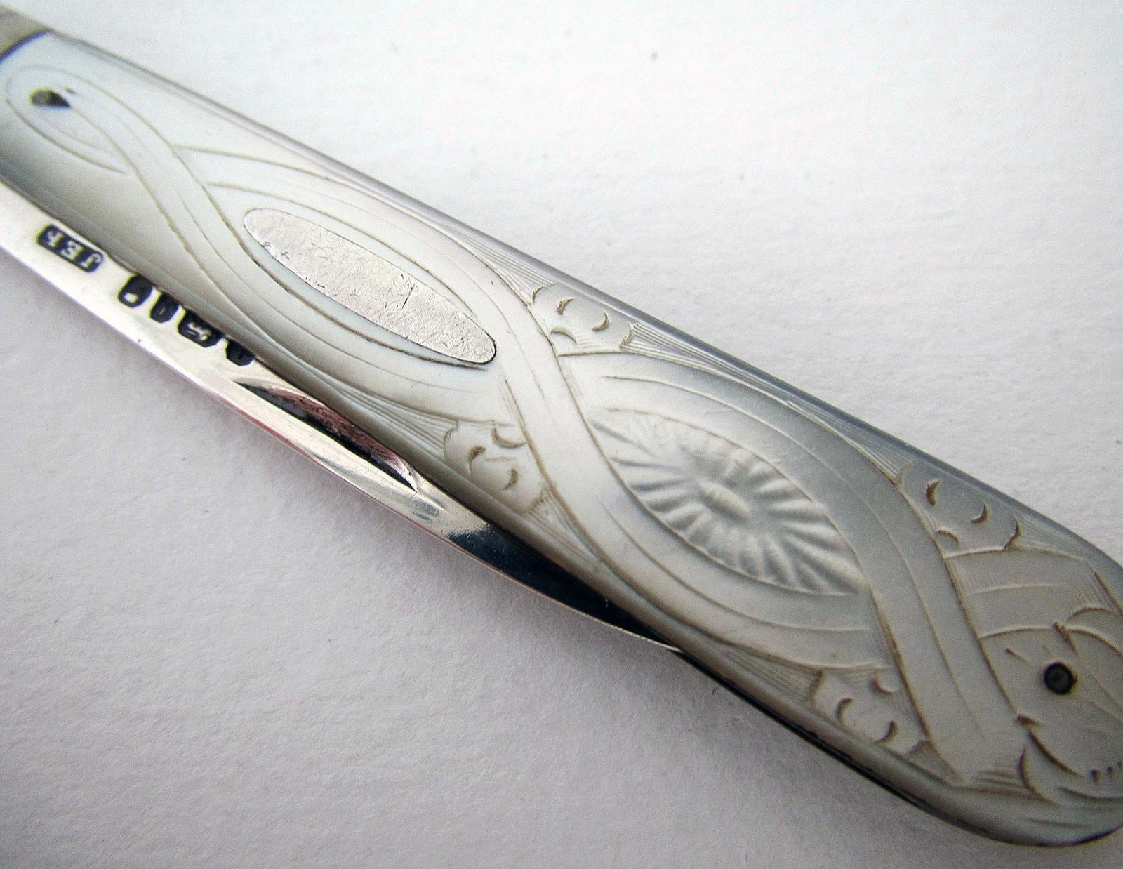 Victorian 1876 Solid Sterling Silver Mother of Pearl Mop English Sheffield Folding Penknife - Walker & Hall (1 of 8)