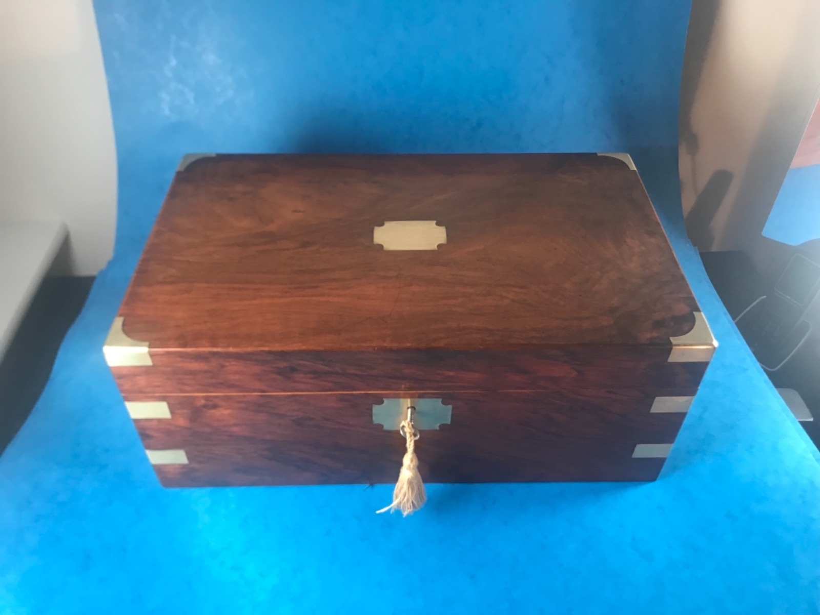 Victorian 1880 Brass Bound Walnut Writing Slope