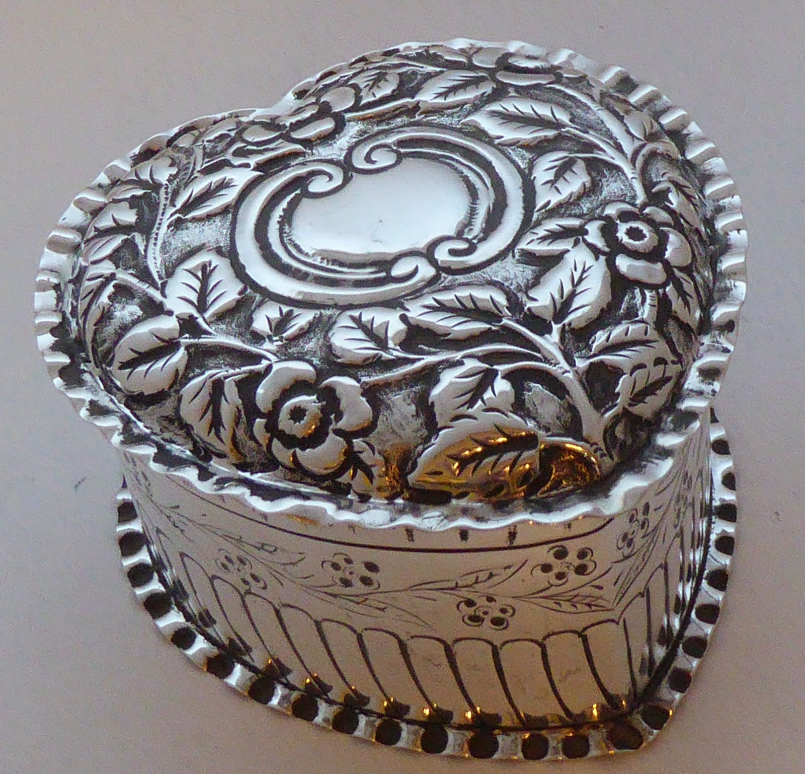 Victorian 1881 Hallmarked Solid Silver Love Heart Pill Earring Jewellery Box