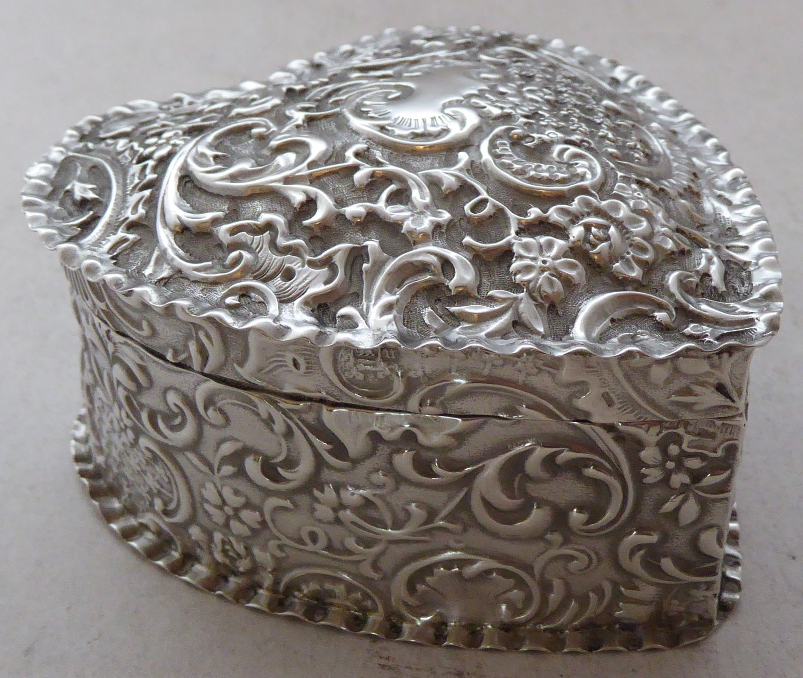 Victorian 1887 Hallmarked Solid Silver Love Heart Pill Earring Jewellery Box