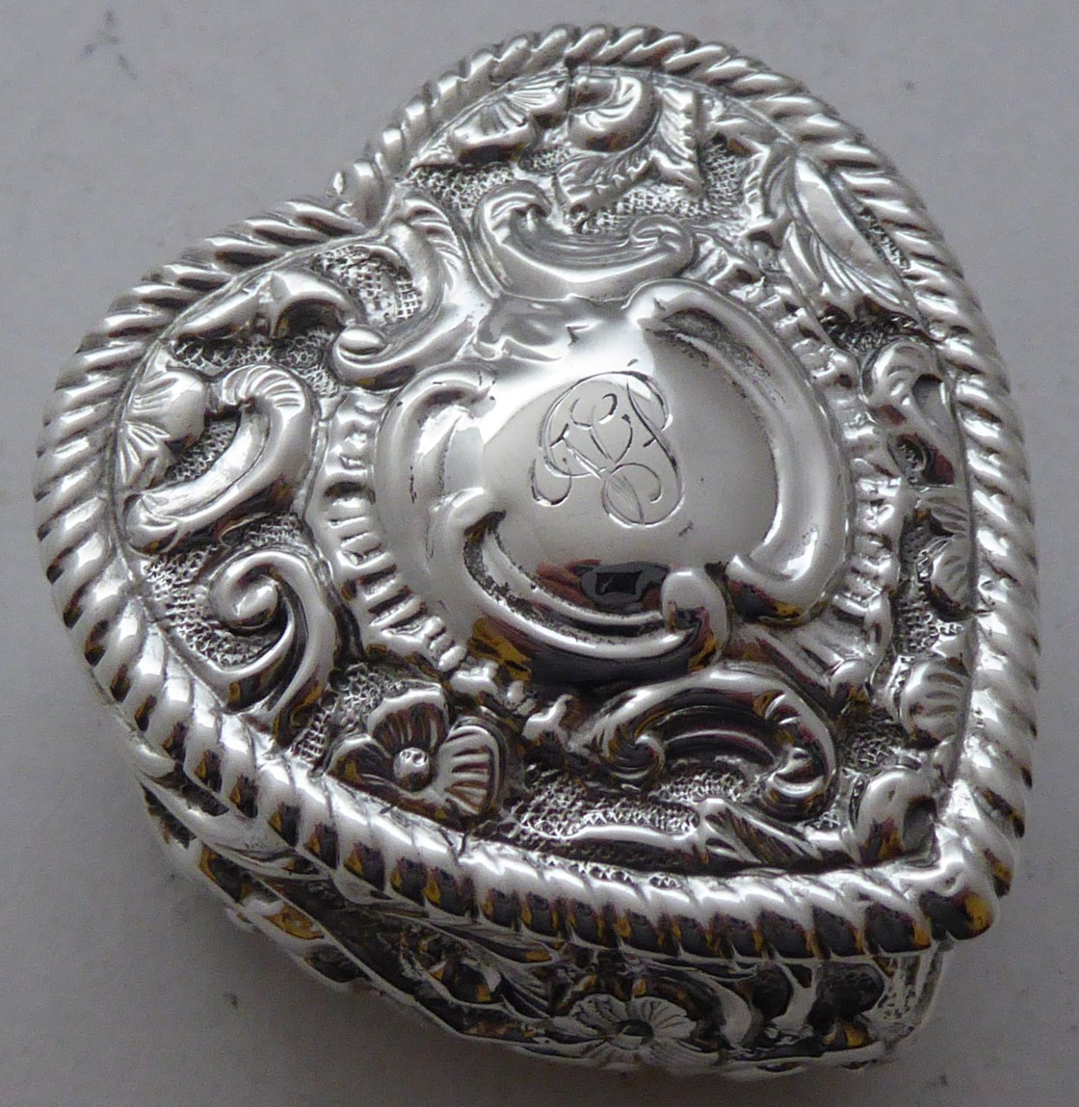 Victorian 1887 Hallmarked Solid Silver Love Heart Pill Earring Jewellery Box
