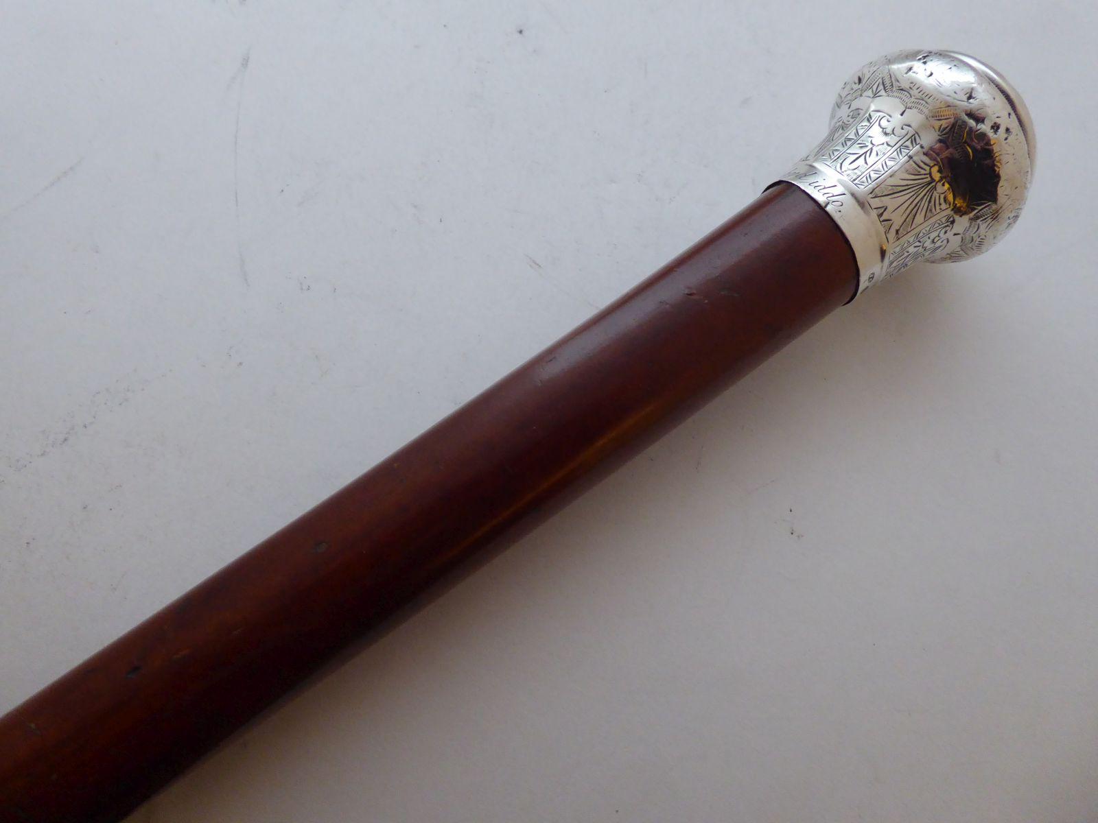 Victorian 1888 Walking Stick Cane Solid Silver Pommel Malacca Shaft Welsh