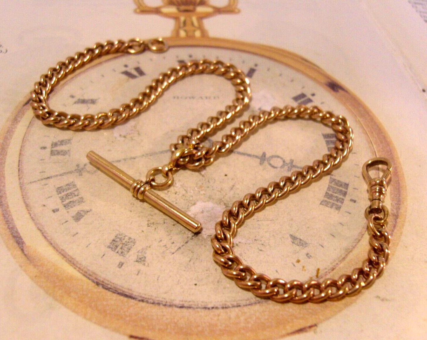 Victorian 1890s Pocket Watch Chain 12ct Rose Rolled Gold Albert With Sliding T Bar