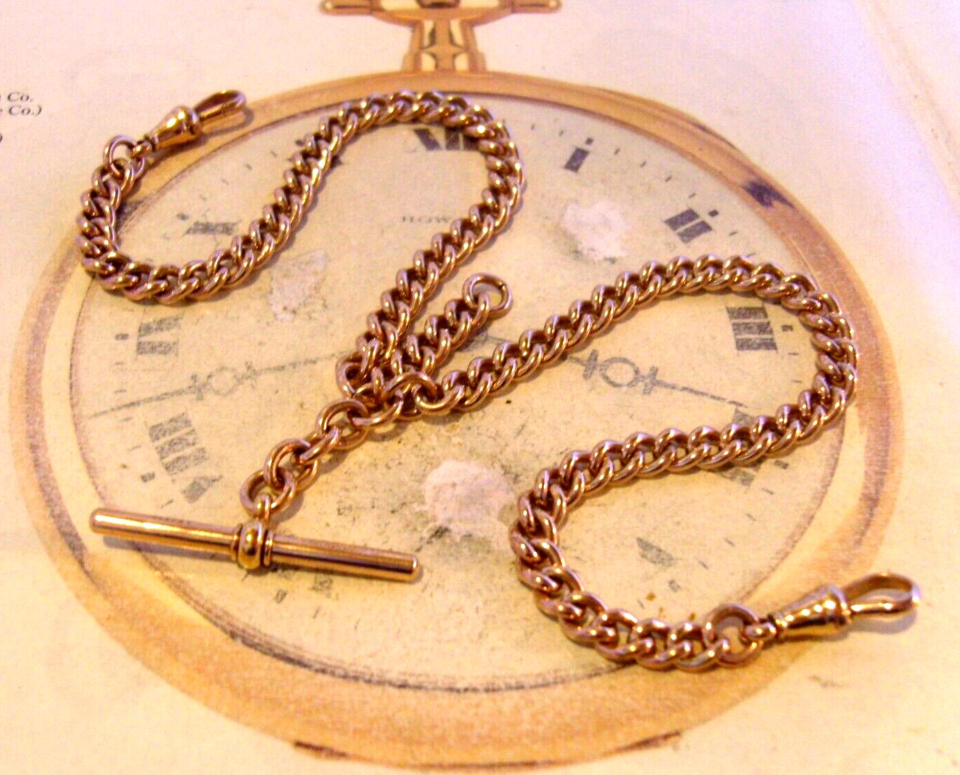 Victorian 1890s Pocket Watch Chain Antique 12ct Rose Rolled Gold Albert With T Bar