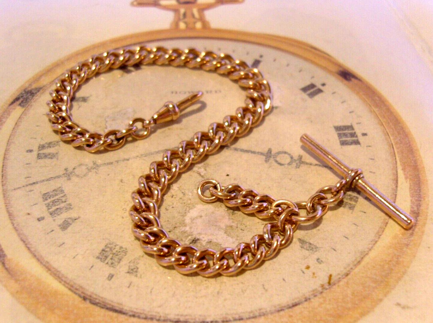 Victorian 1890s Pocket Watch Chain Antique 12ct Rose Rolled Gold Albert With T Bar